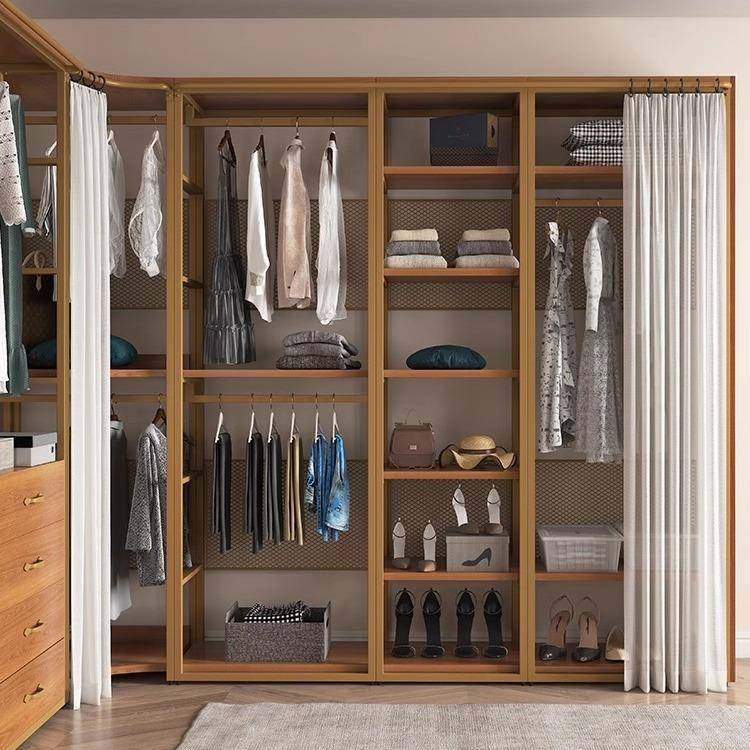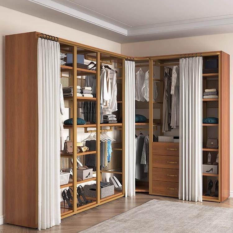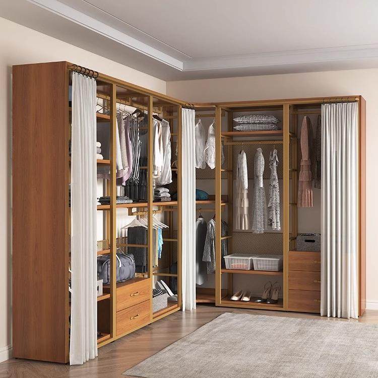 开放式衣柜衣帽间挂衣杆步入式金属衣架卧室落地铁艺实木收纳架子