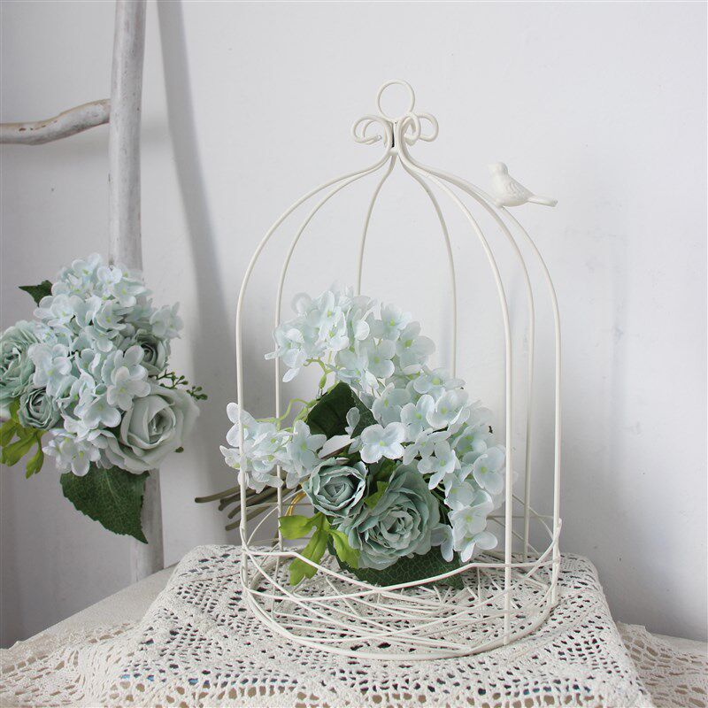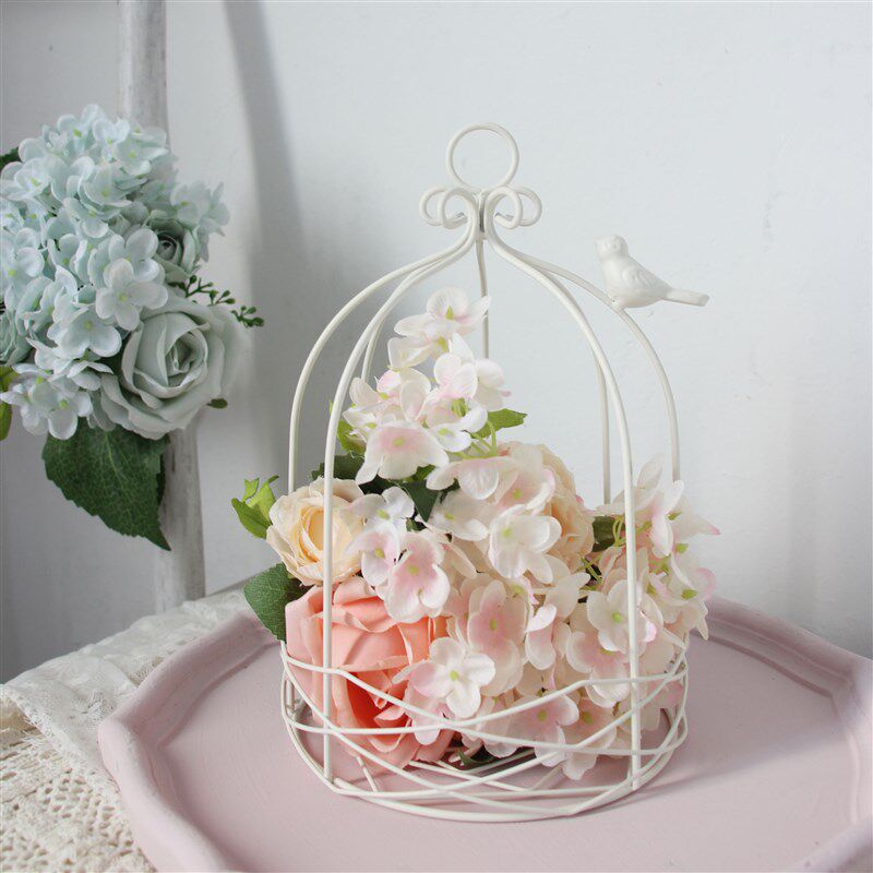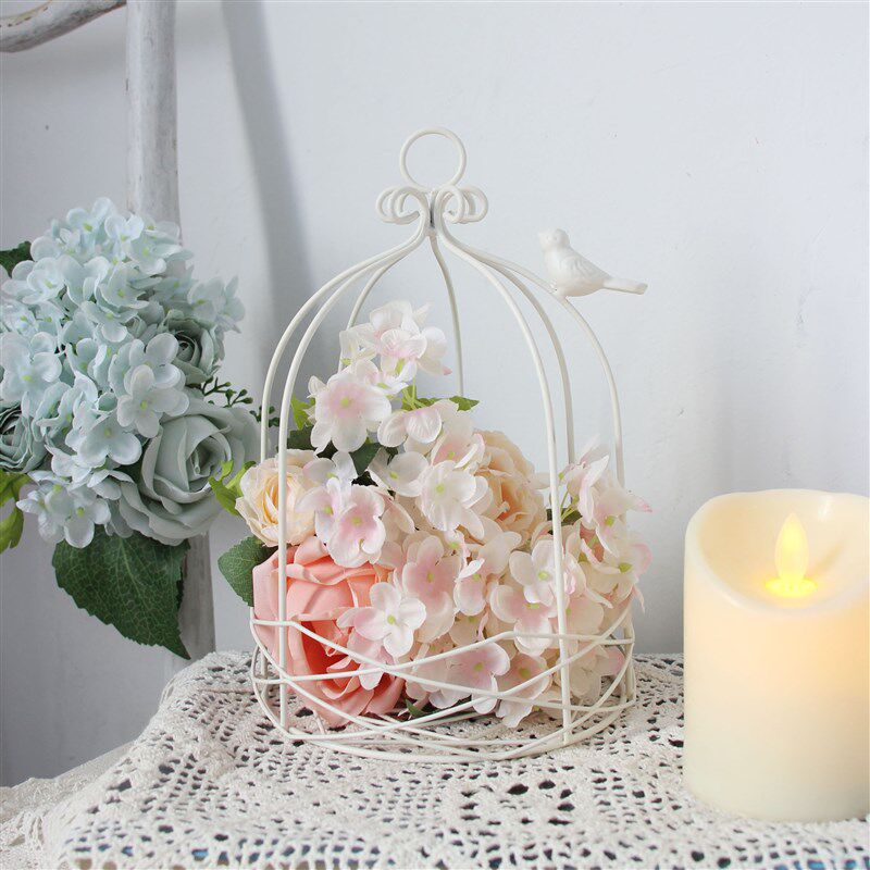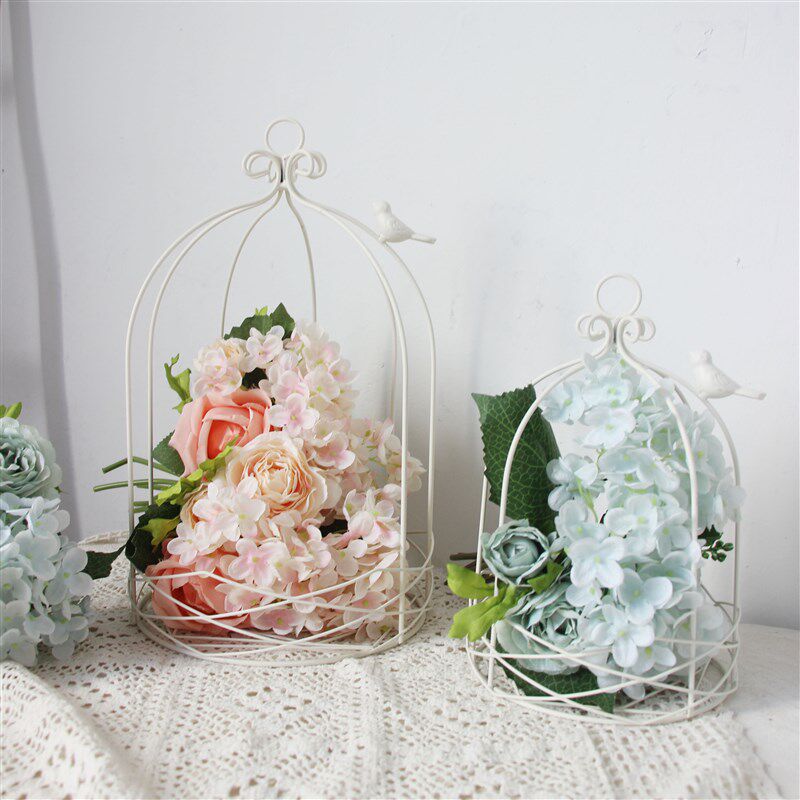 白色装饰鸟笼铁件烛台复古套二简约家居饰品装饰摆件可挂多肉花盆