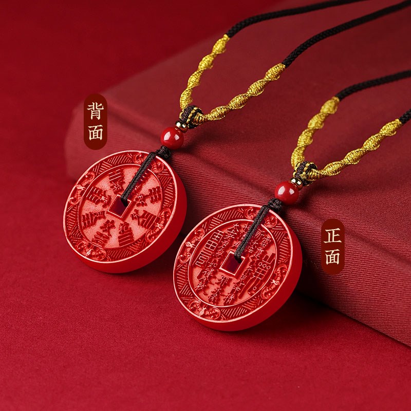 速发八卦牌朱砂山鬼花钱吊坠本命年平安挂件符项链