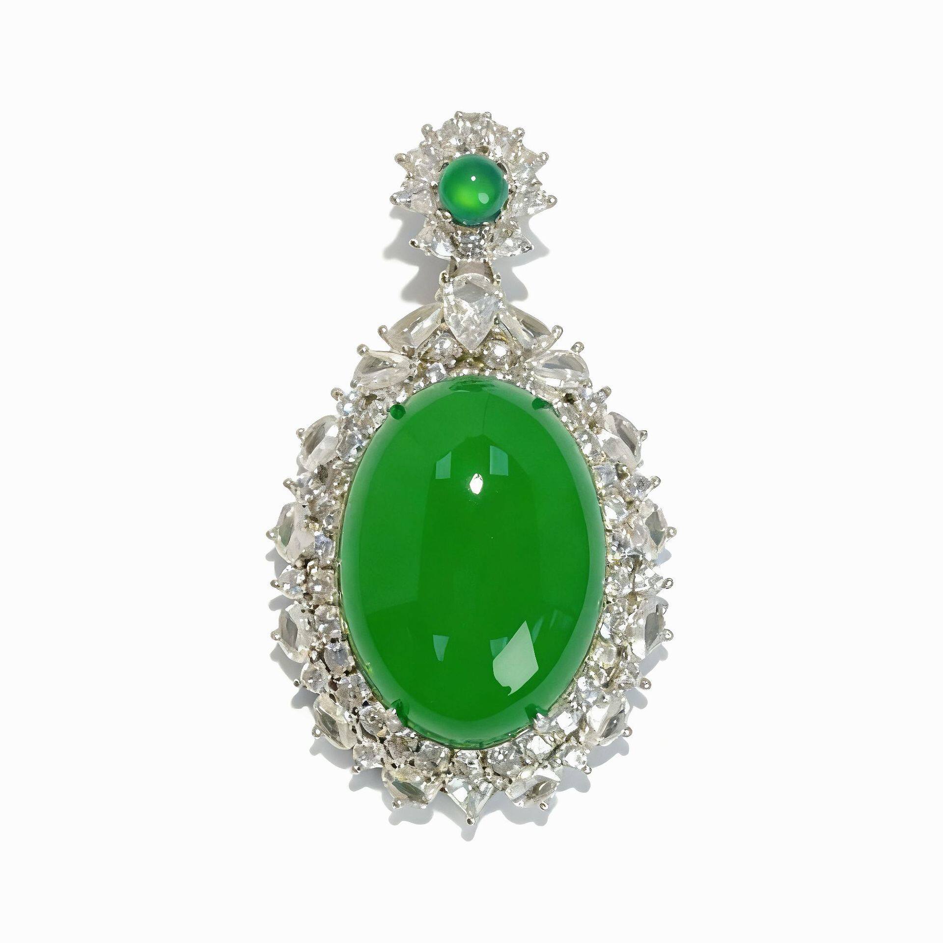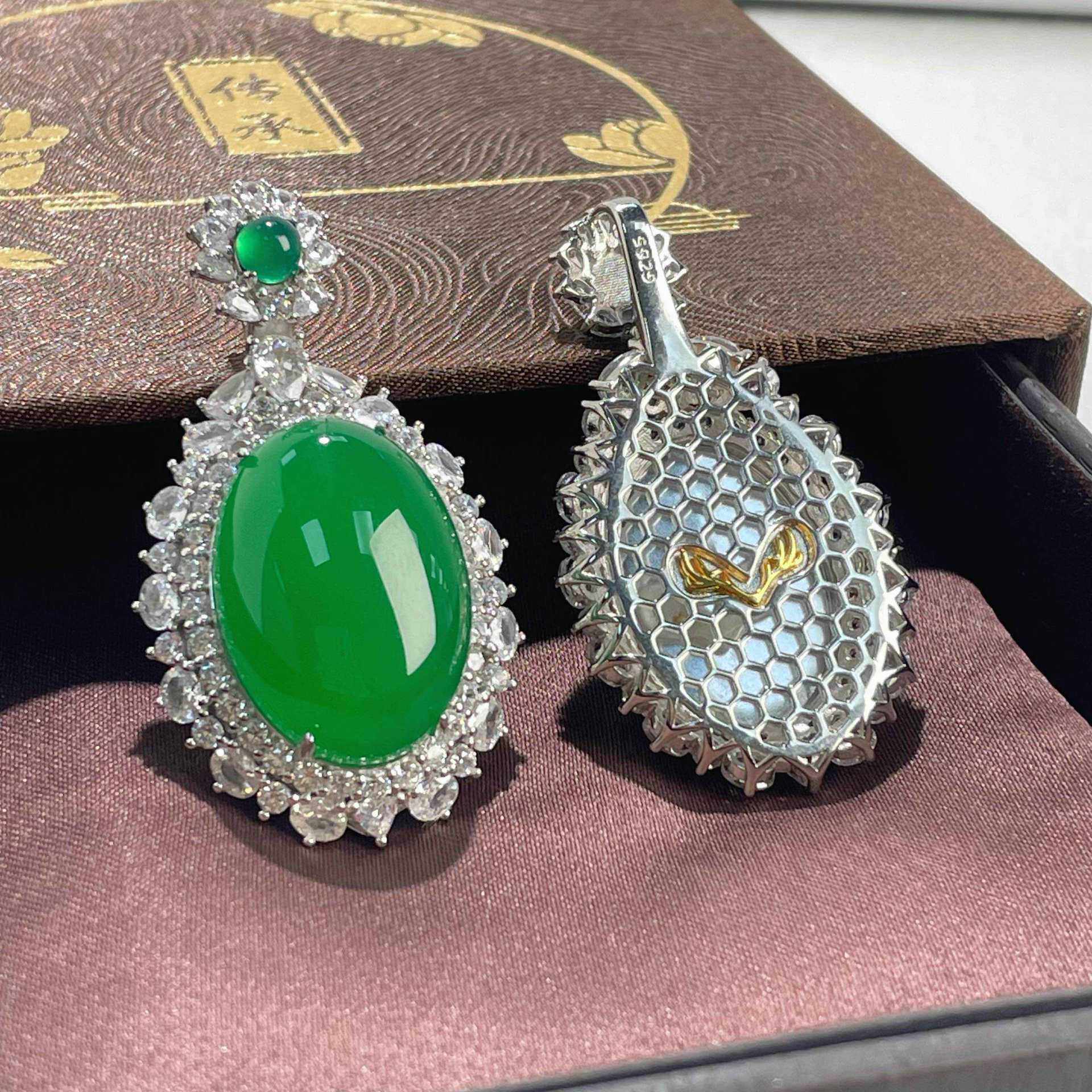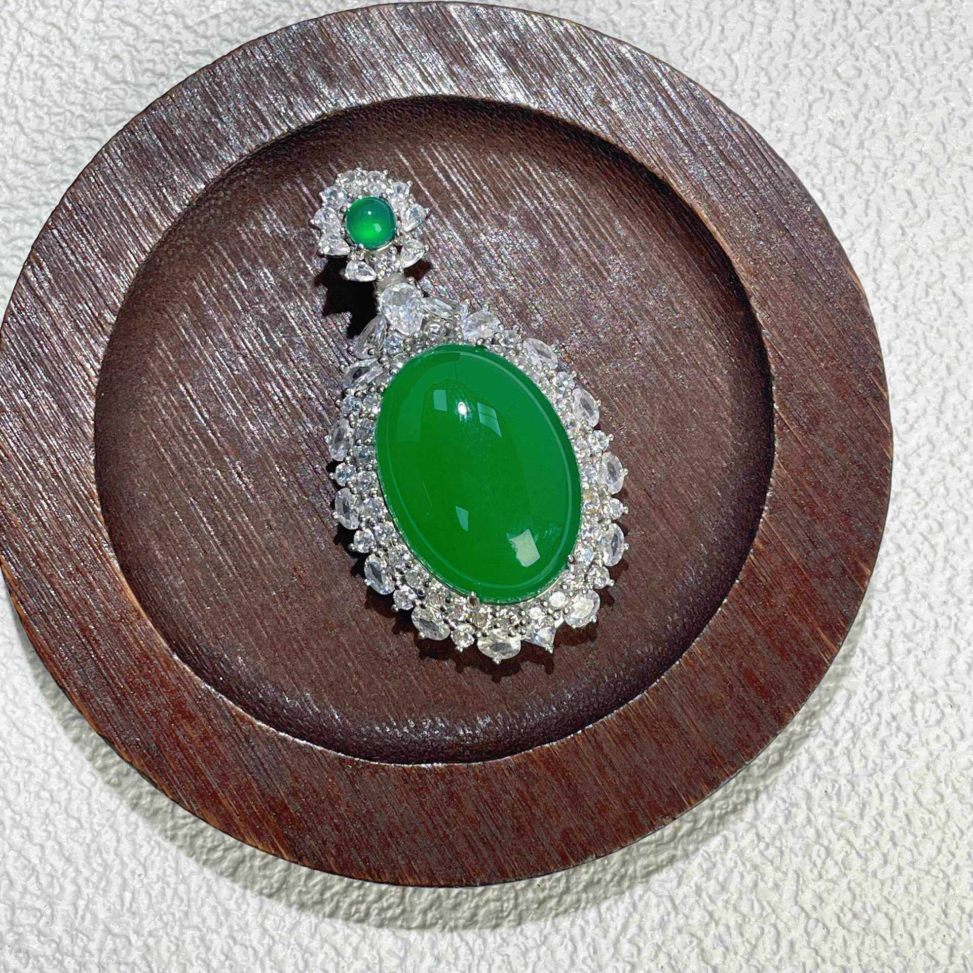 s925纯银饰新款天然高冰绿玉髓银镶吊坠轻奢翡翠帝王绿色颈饰挂坠