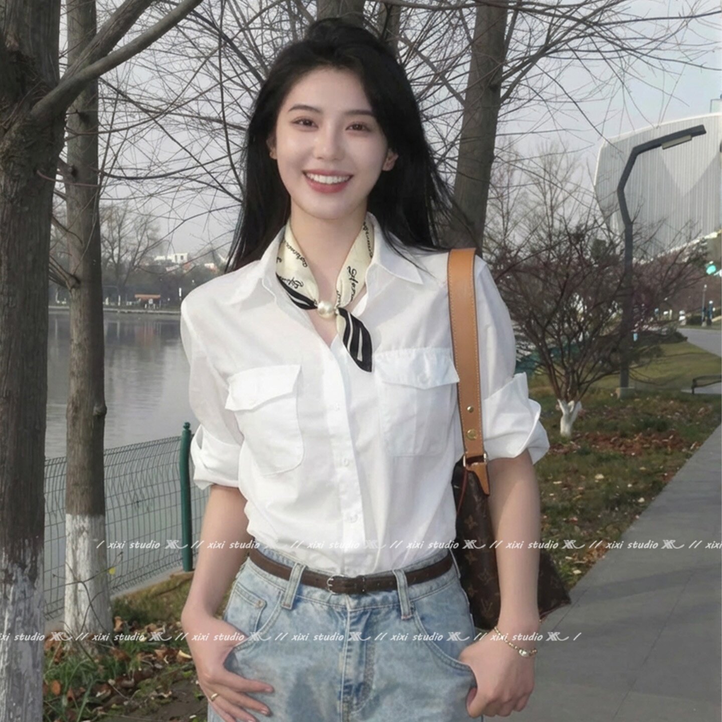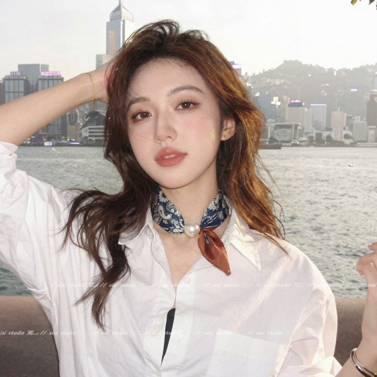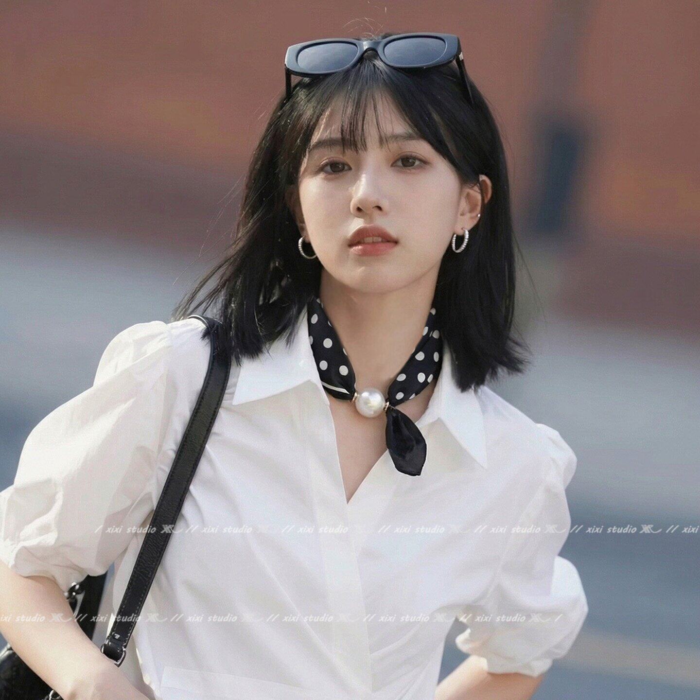 复古港风白色字母磁吸丝巾项链高级感挂脖配饰新品搭衬衫颈带颈饰
