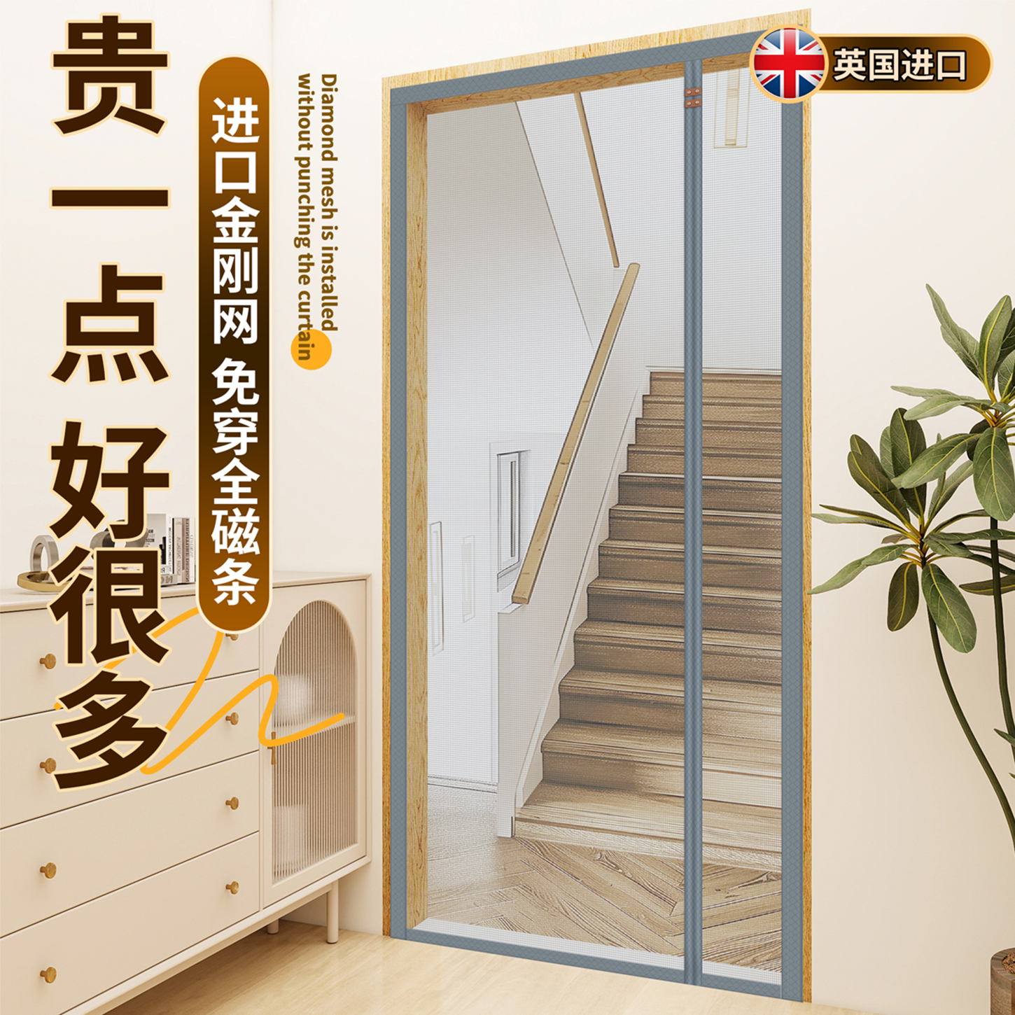 2026新款高档防蚊门帘四季家用入户隔断门帘全磁条金刚纱网纱窗门