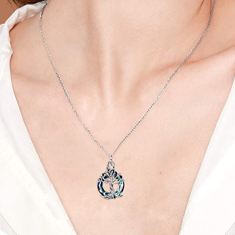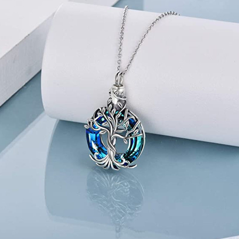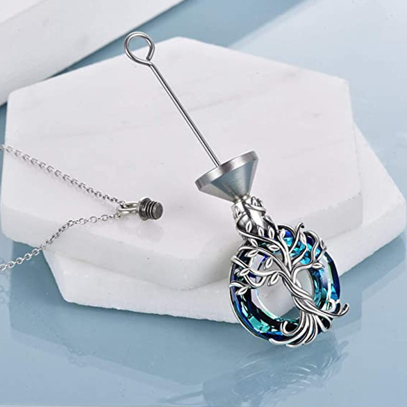 跨境热销亚马逊经典款蓝色水晶生命树不锈钢宠物骨灰吊坠项链罐子