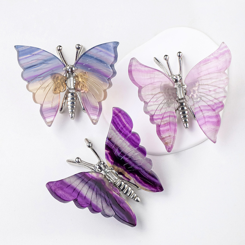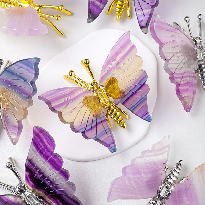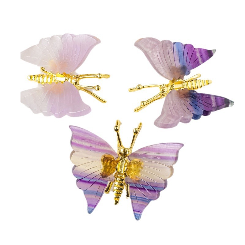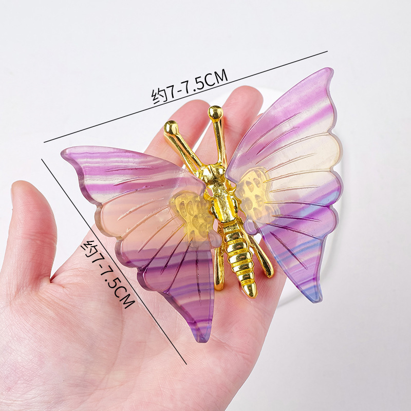 直营跨境天然七彩萤石蝴蝶摆件 彩萤石原石矿标 家居桌面装饰