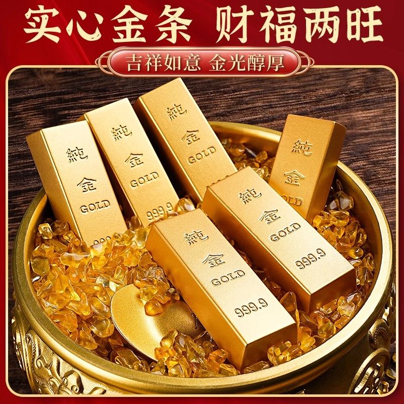 纯铜仿真金条摆件实心假金砖金块镀金样品道具仿黄铜中国黄金元宝