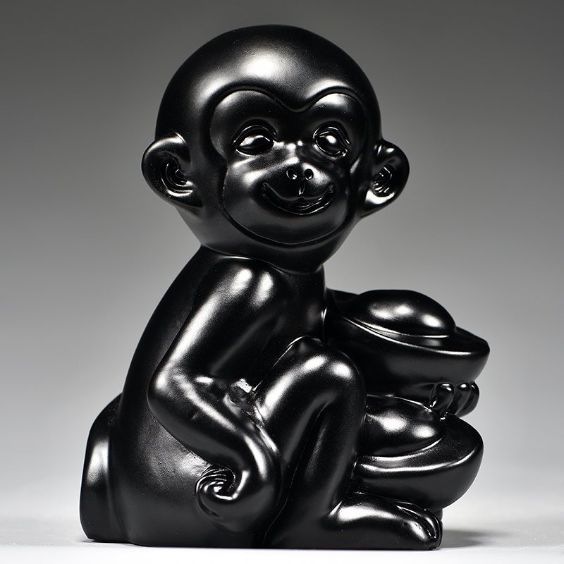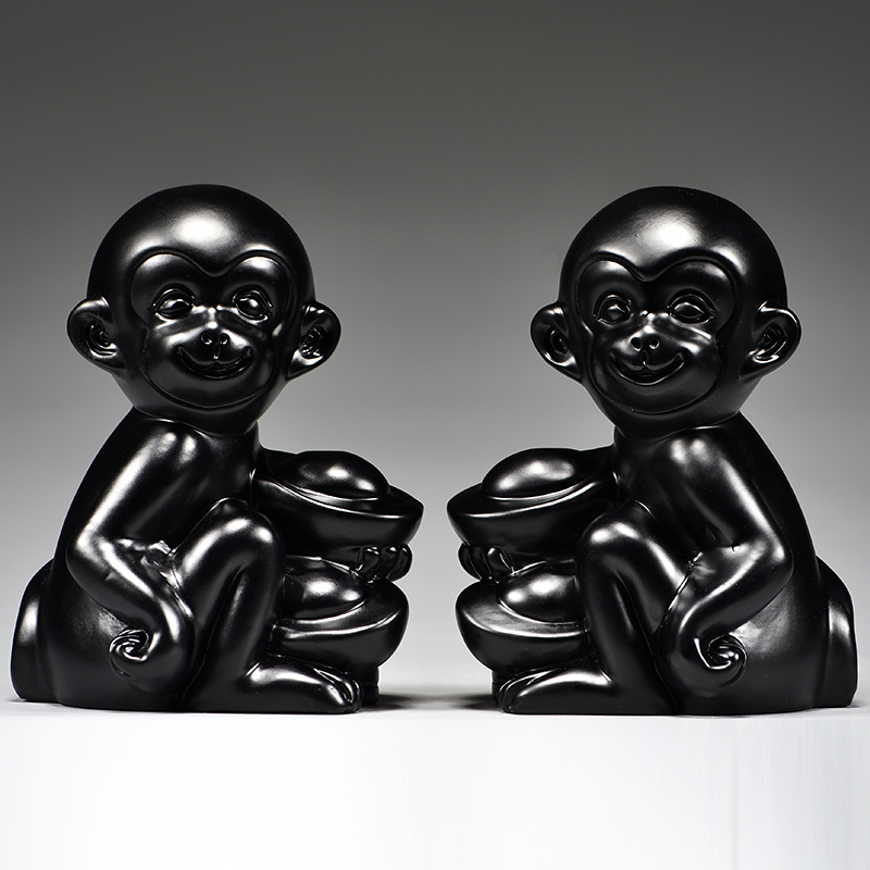 黑色实木质猴子雕刻摆件十二生肖木头猴吉祥物家居客厅装饰工艺品