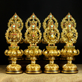 全鎏金鼹鼠吐宝鼠宝瓶八吉祥雕花彩绘百宝座家用桌面供具铜摆件