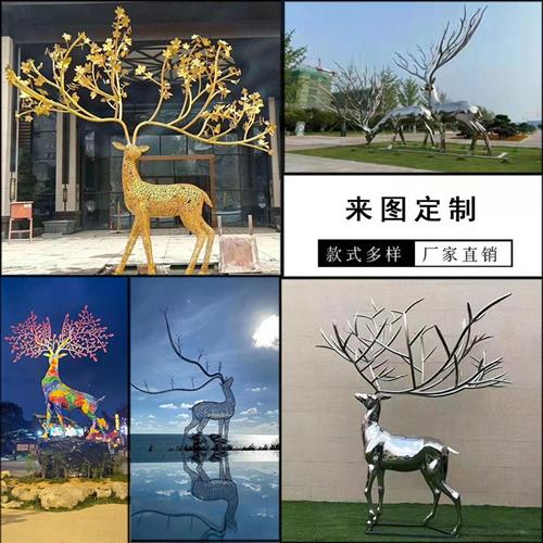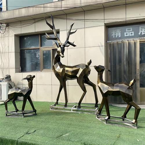 不锈钢鹿雕塑定制户外景观小品园林摆件铁艺金属镜面镂空几何小鹿