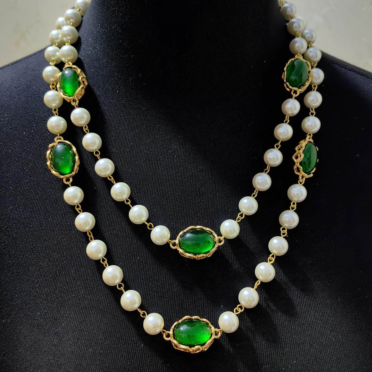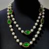 青岛中古vintage珍珠项链夸张多层手工琉璃绿色耳钉套装中古欧美