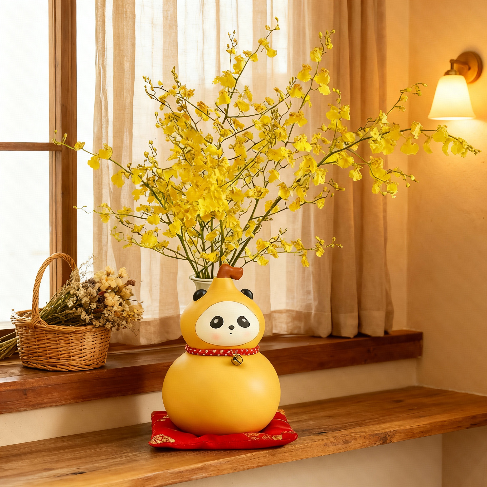 卡通熊猫花瓶摆件可爱黄色陶瓷家居装饰品客厅桌面工艺品