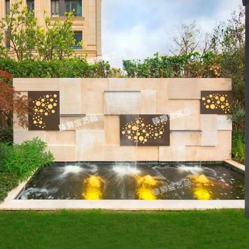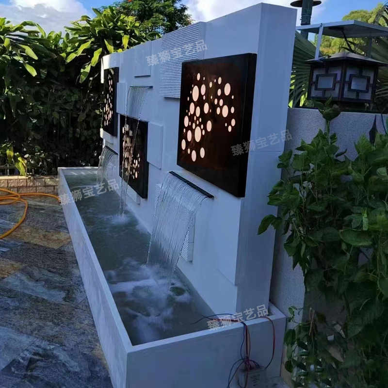 别墅花园流水墙入户庭院落地摆件水幕墙屏风院落景观水系鱼池瀑布