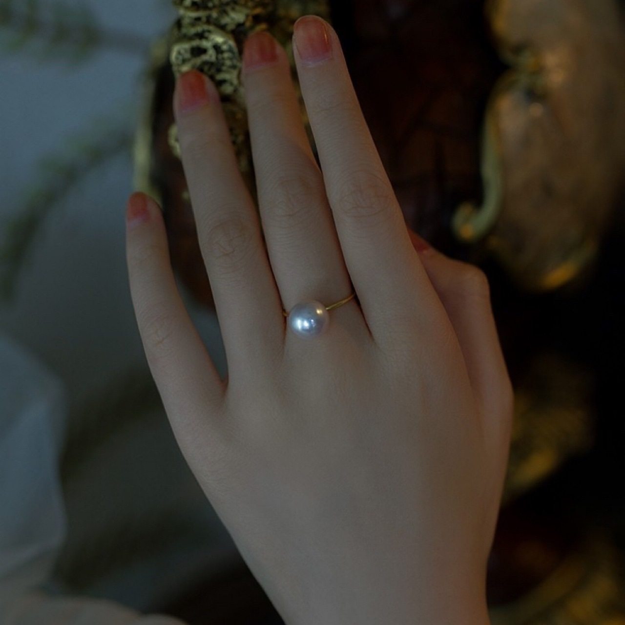 天然淡水珍珠戒指s925银镀18k金简约款百搭气质大珍珠妖艳紫手饰