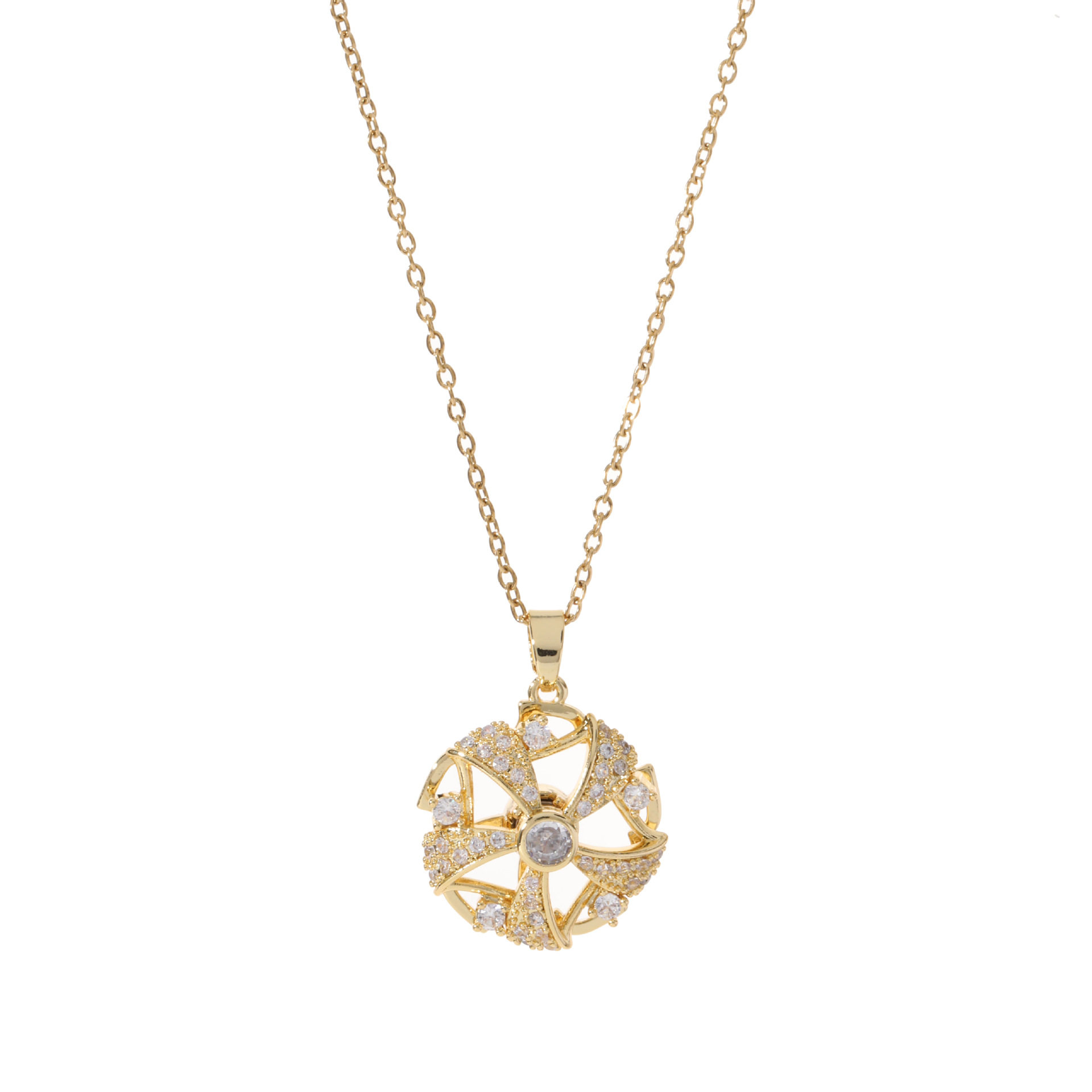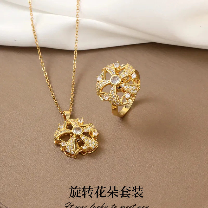 项链女网红旋转锆石花朵小众跨境新款设计感吊坠气质套装钛钢项链