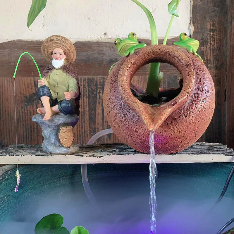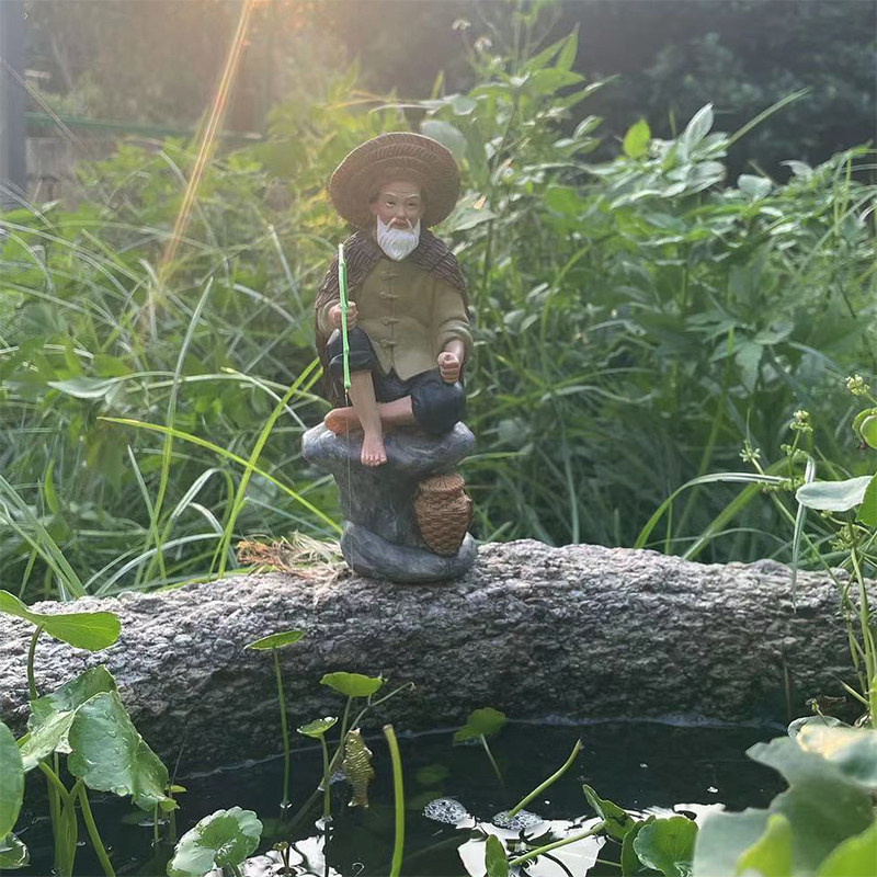 姜太公钓鱼摆件鱼缸鱼池水塘造景饰品橱窗玄关办公桌茶宠树脂艺品