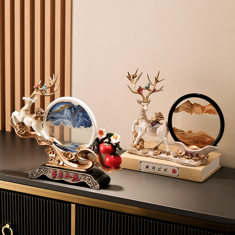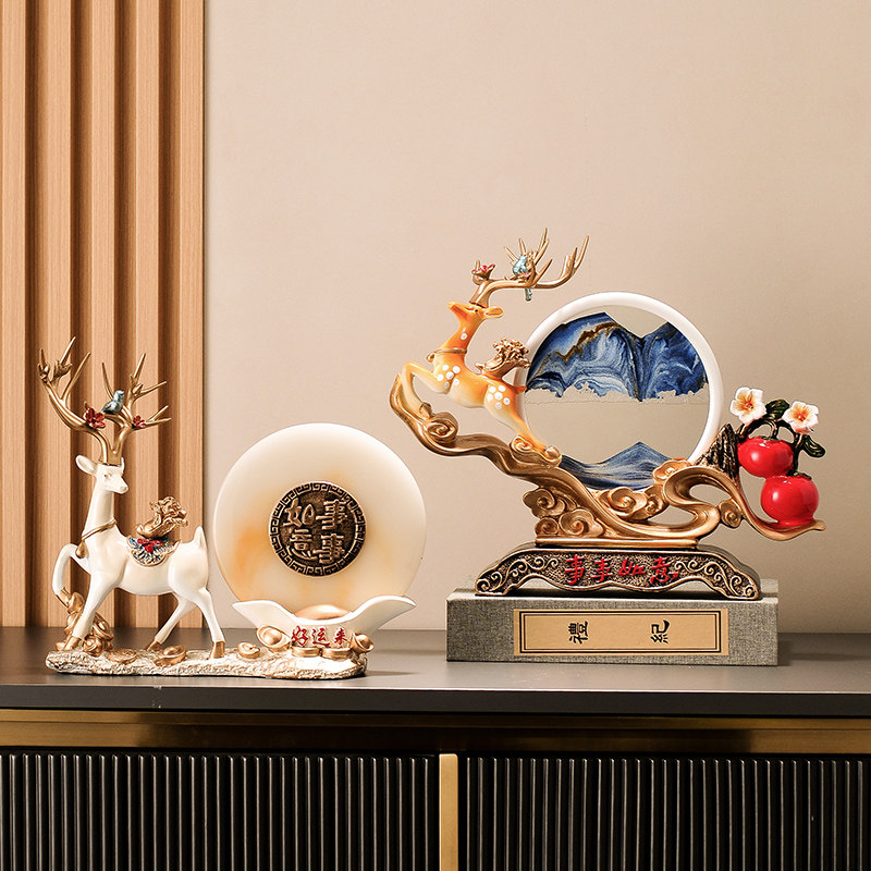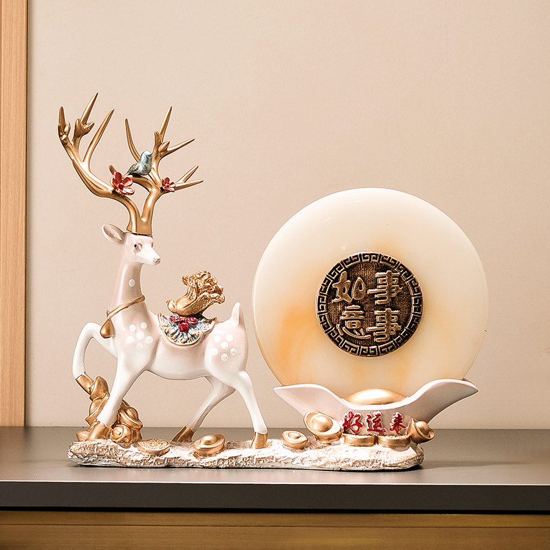 高档玄关入户摆件 好运来招财鹿装饰品 乔迁新居餐边柜摆设送礼品