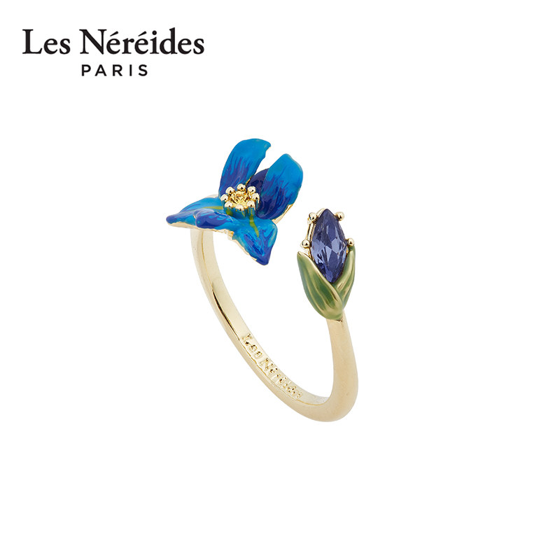 Les Nereides梵高鸢尾花系列 蓝色鸢尾花 可调节戒指 送女友