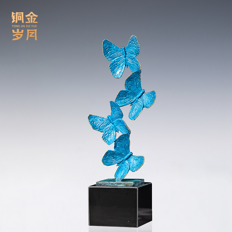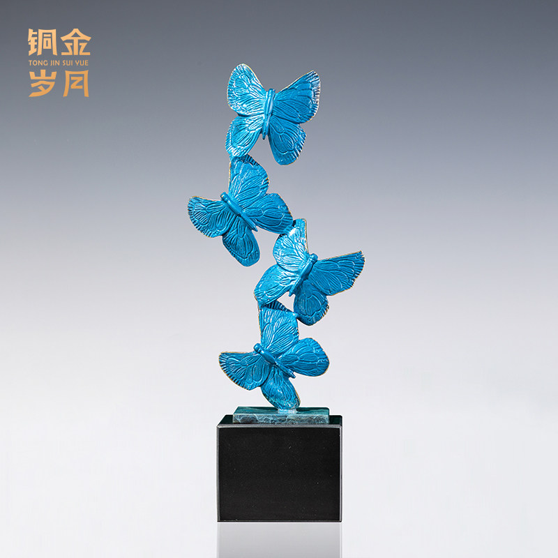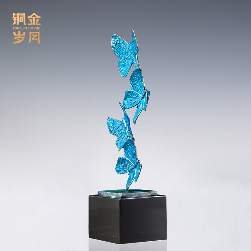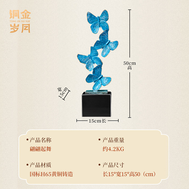 《翩翩飞舞》铜金岁月黄铜蝴蝶家居摆件新中式壁龛客厅玄关工艺品