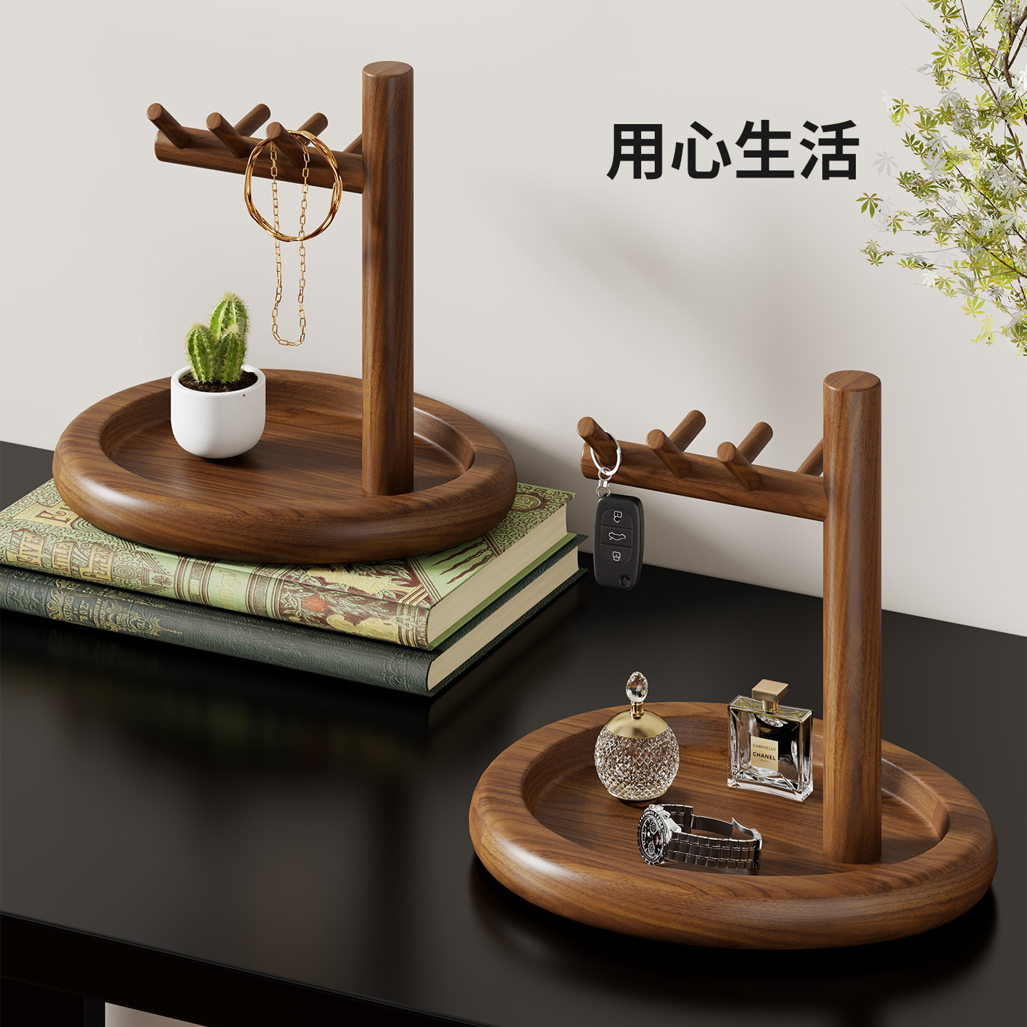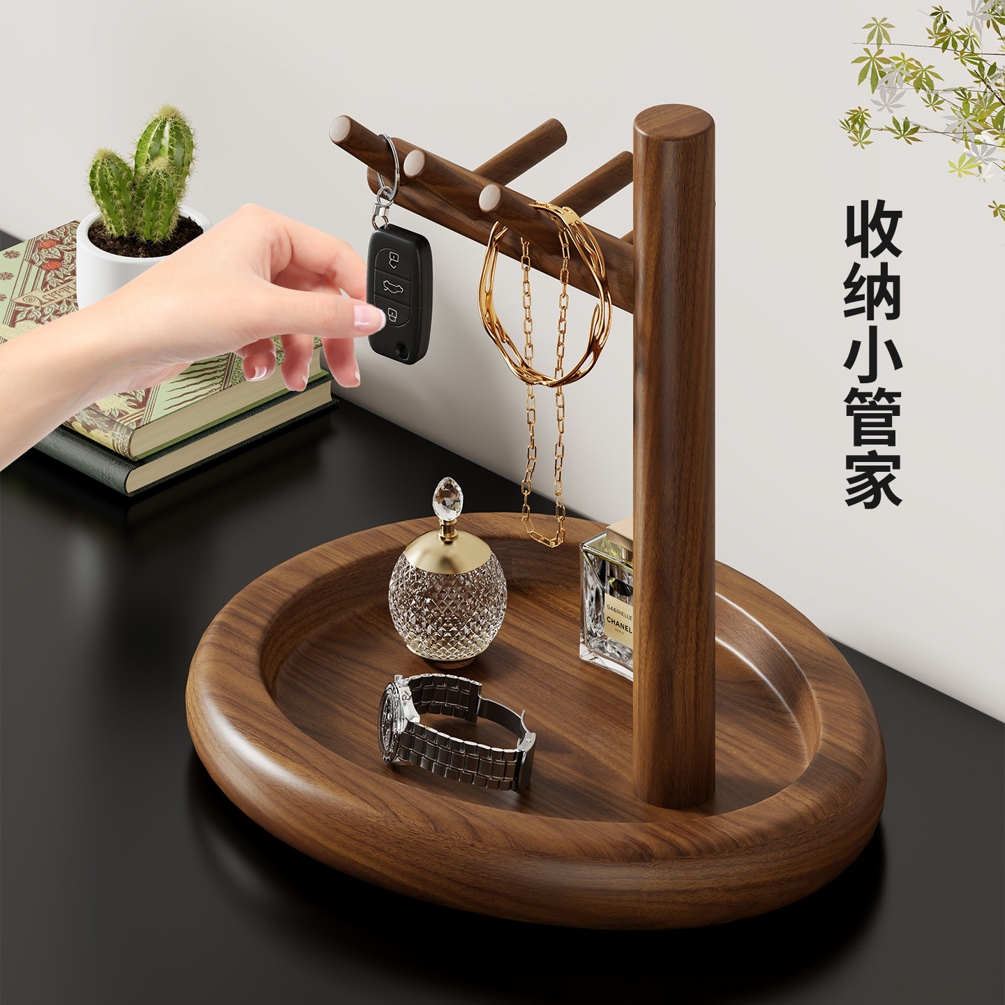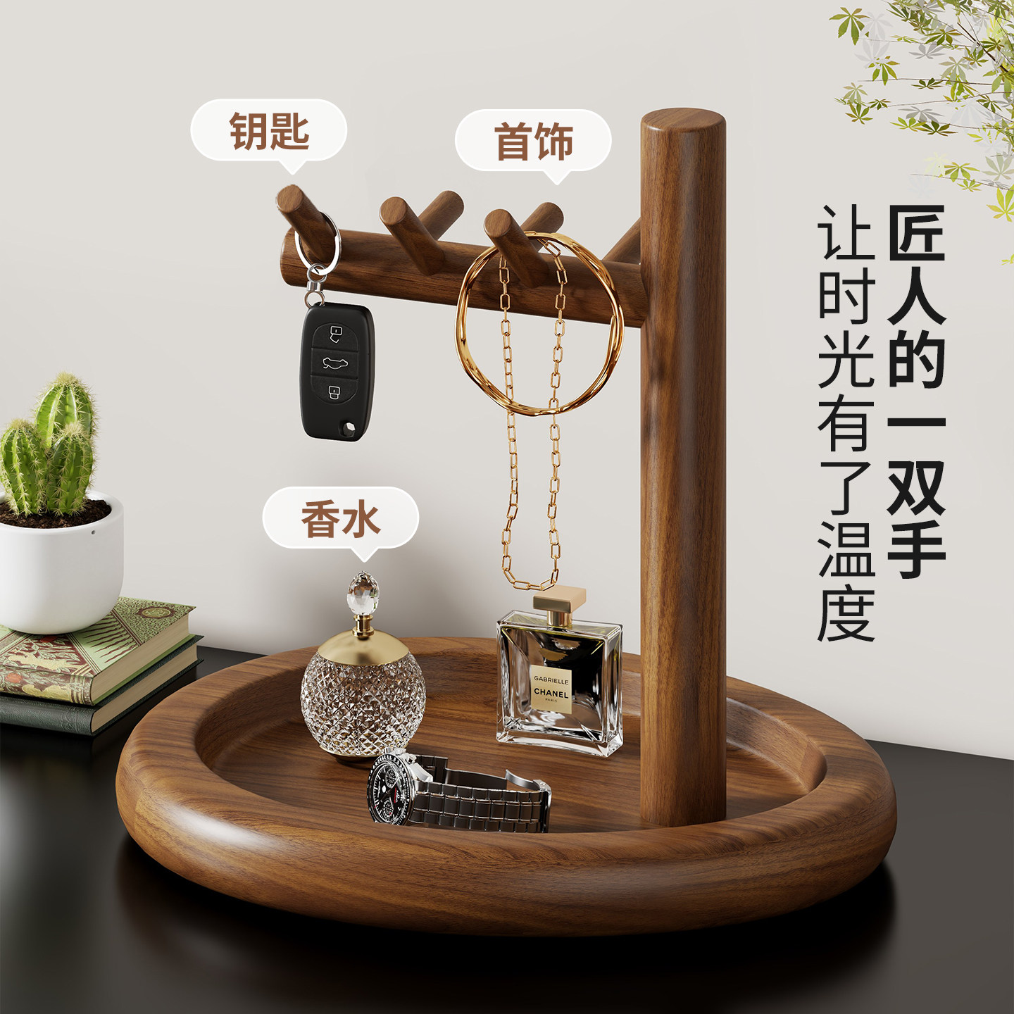 实木钥匙架桌面多功能首饰手表收纳架玄关鞋柜上方纸巾香水放置架