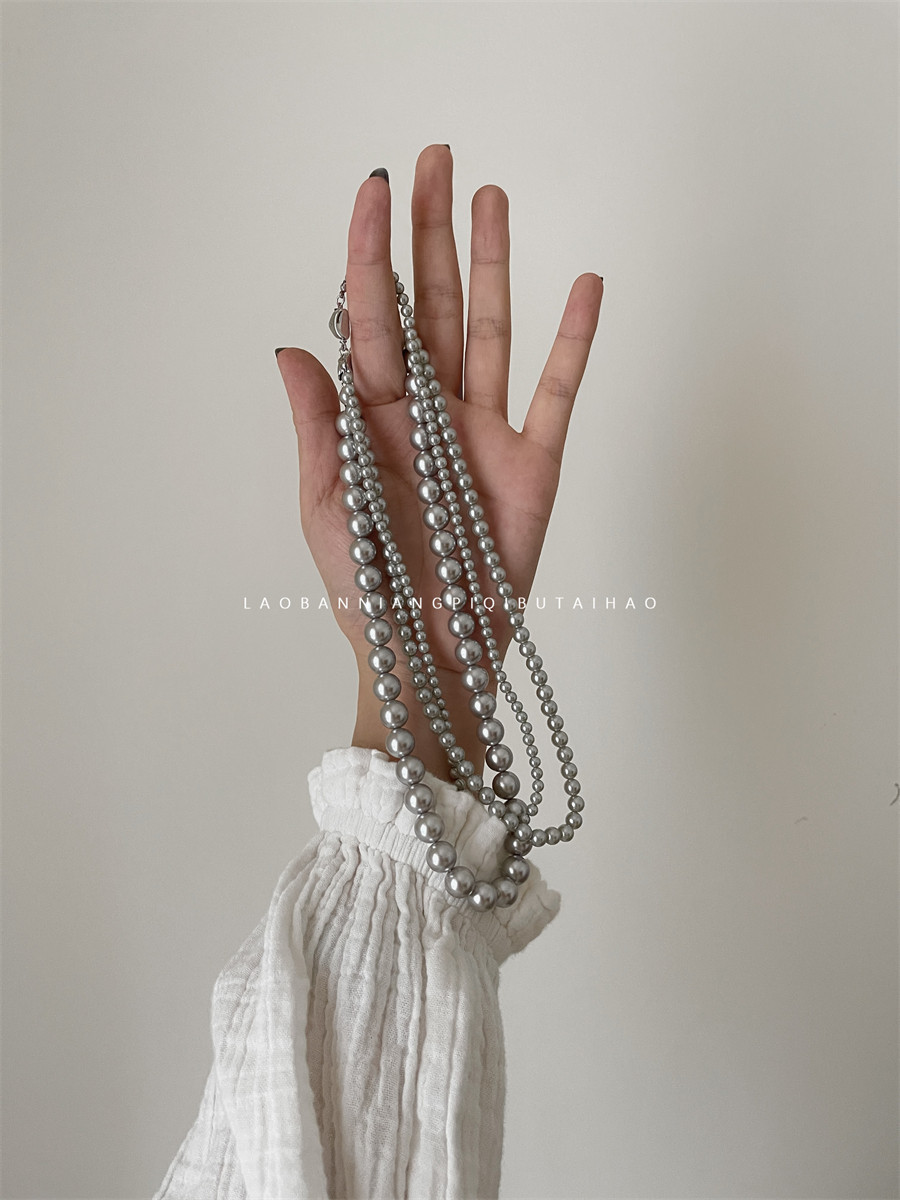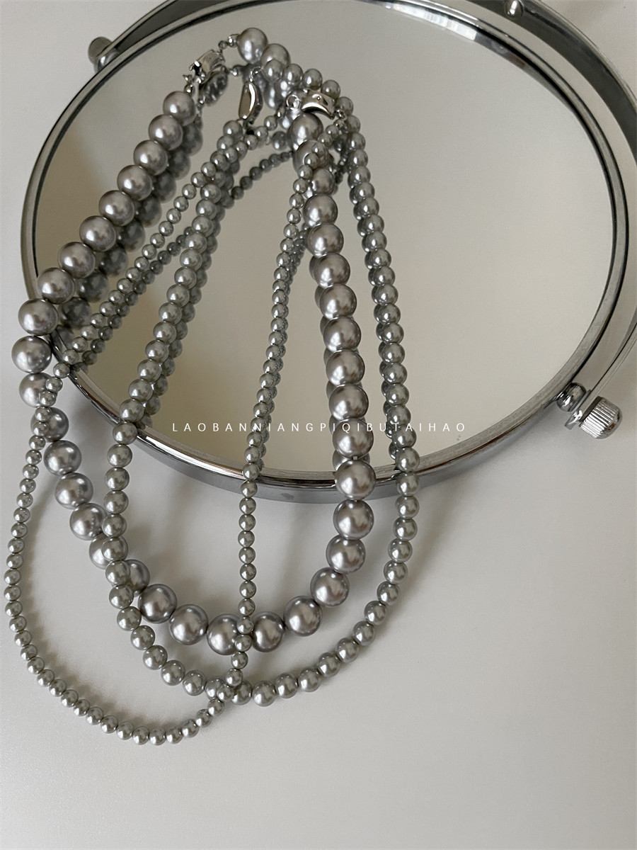 真多麻平替!复古灰色珍珠项链时髦气质锁骨链高级倪妮同款16230