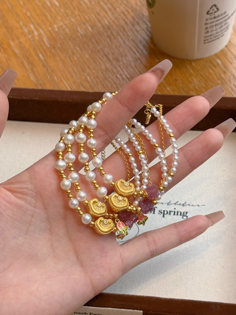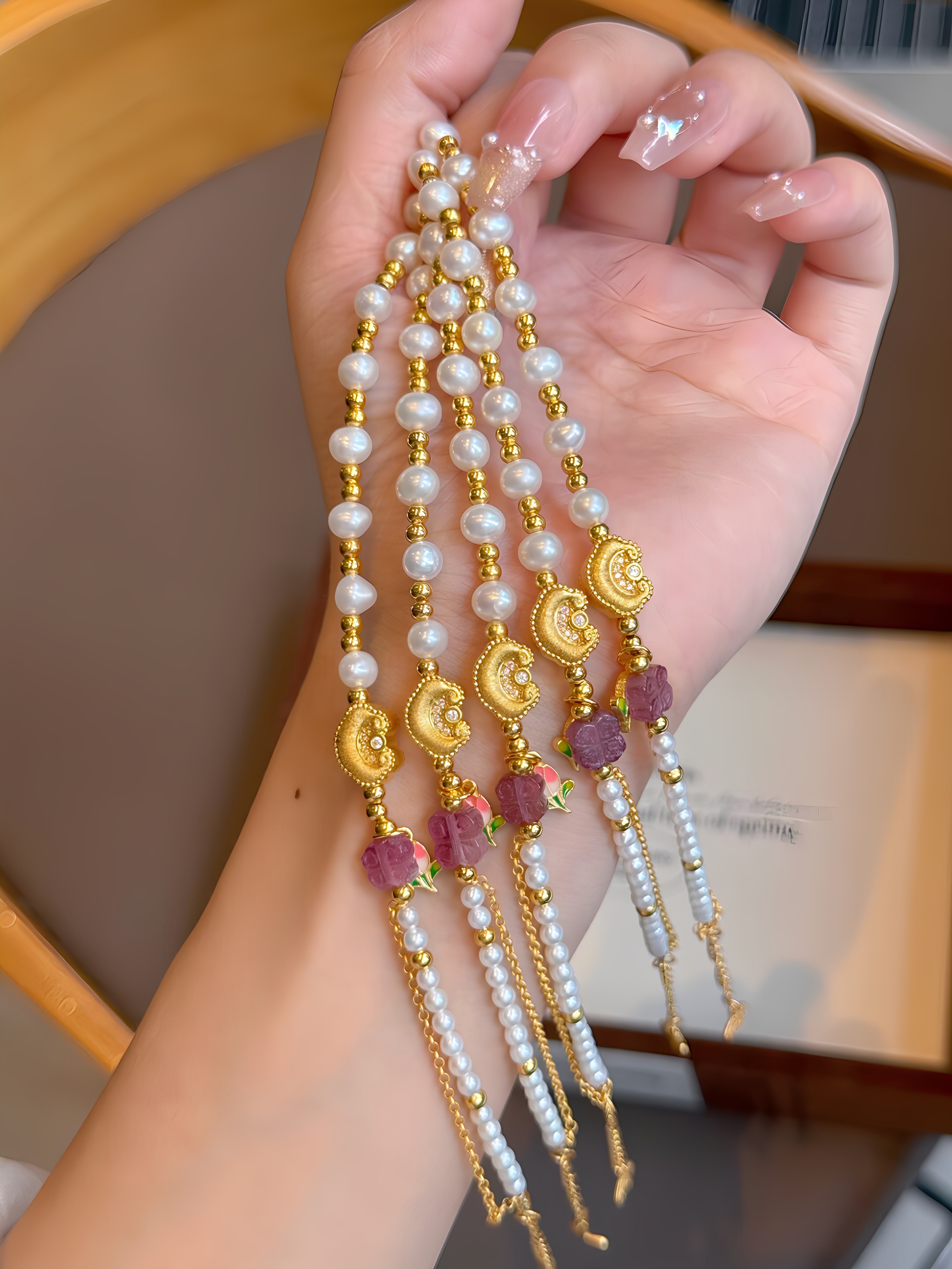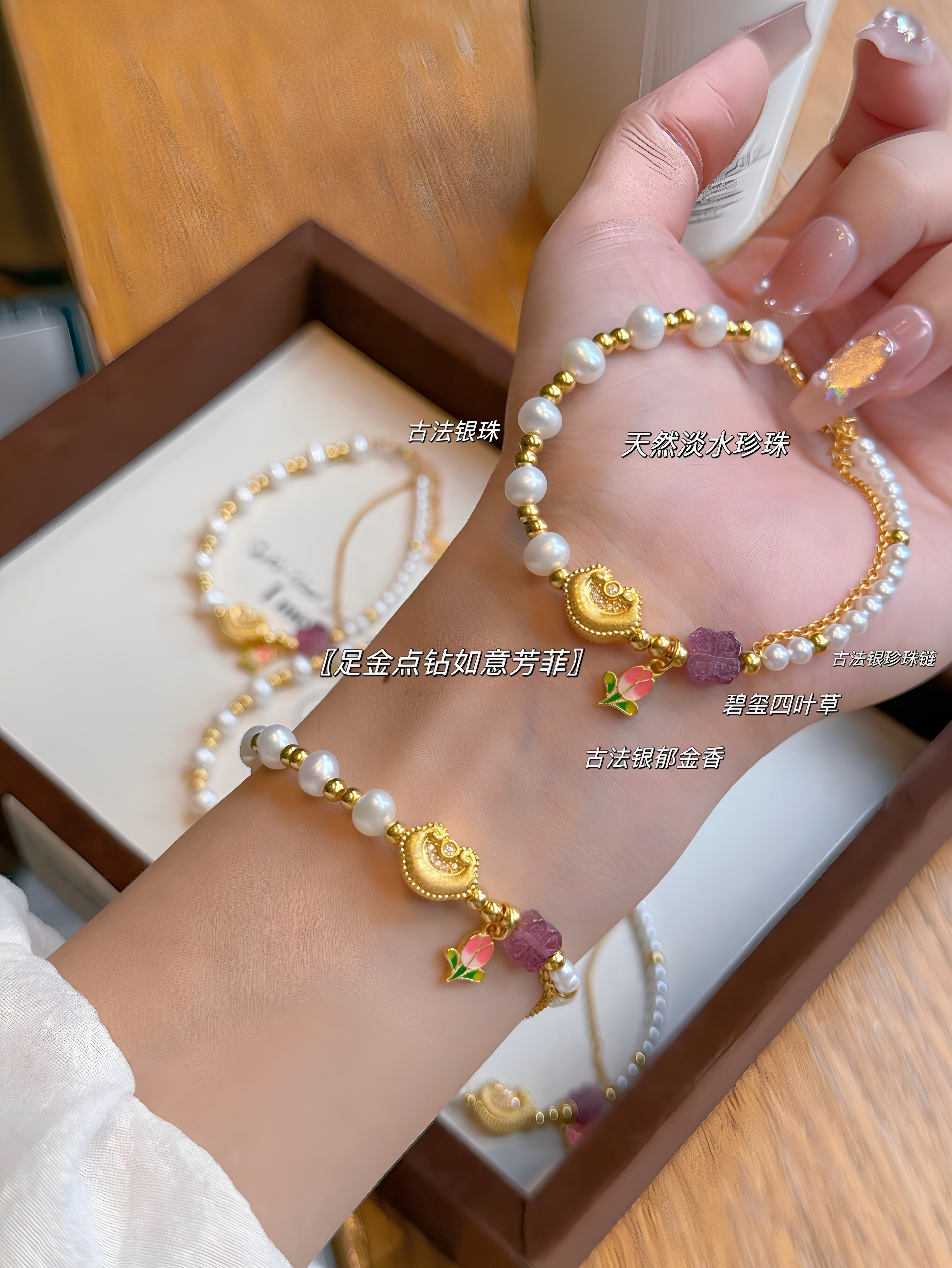 足金点钻如意手链天然珍珠手串生日礼物送女友闺蜜高级感叠戴显白