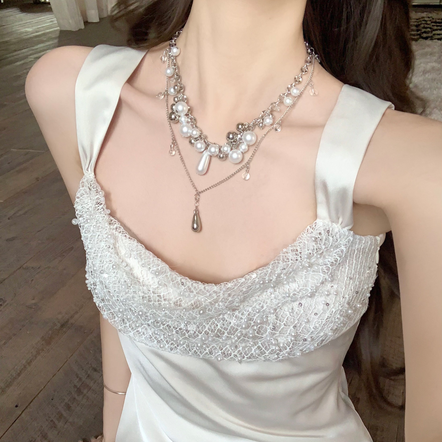【蜜桃茶】纯白缪斯 精致多层珍珠choker项链高级感海边礼服配饰