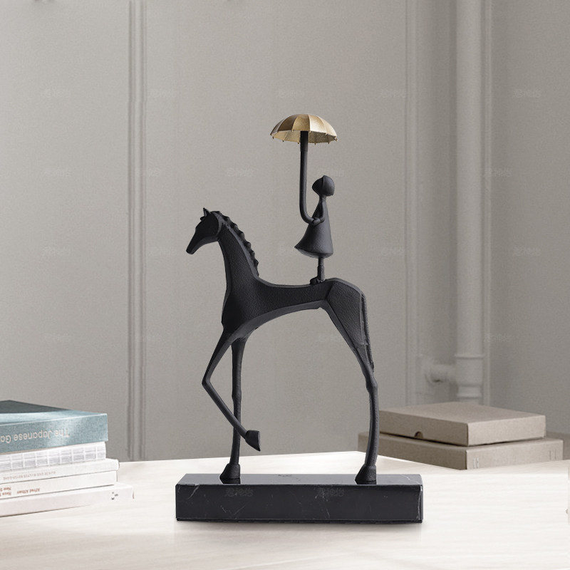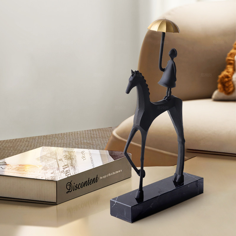 现代简约意式马背女孩打伞摆件电视柜酒柜书房客厅玄关轻奢装饰品