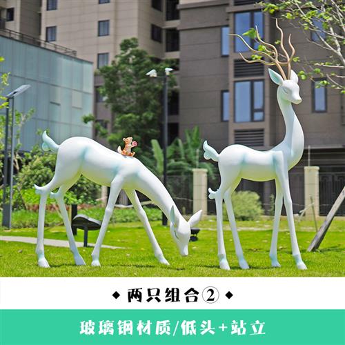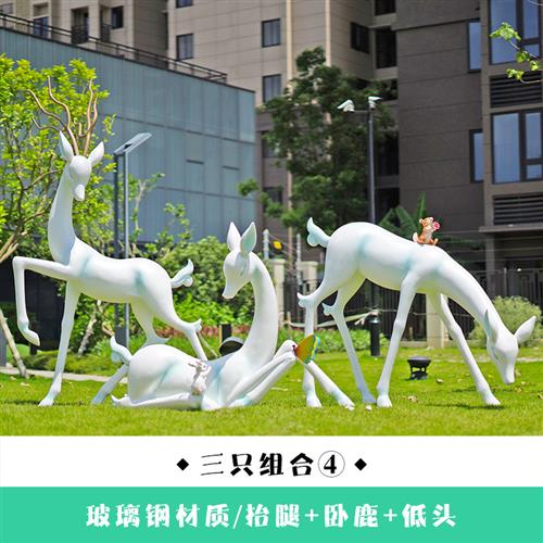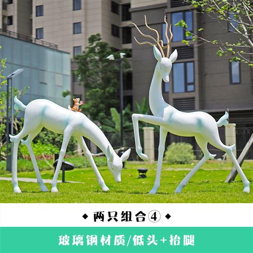 户外抽象梅花鹿玻璃钢雕塑售楼部小区草坪园林白色鹿造景模型摆件