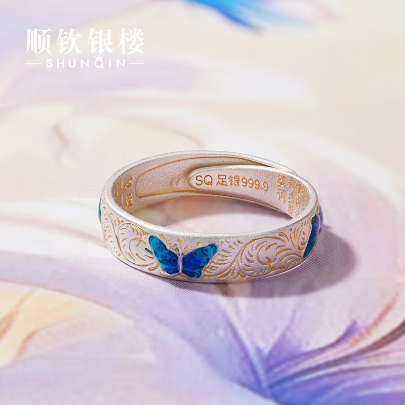 顺钦银楼S9999纯银戒指女蝶芳瑶足银指环新中式古风配饰礼物纪念
