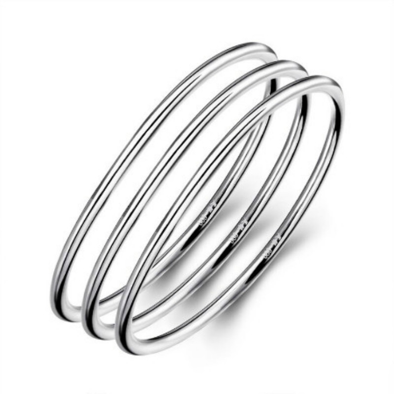 999银手镯女纯银 光面实心闭口三生三世细圈银饰送女友情人节礼物