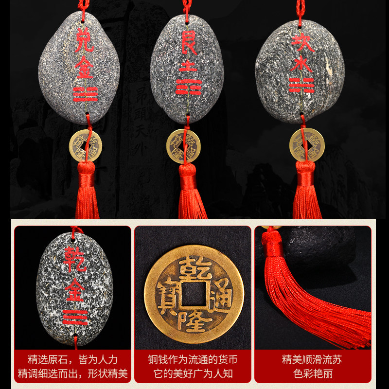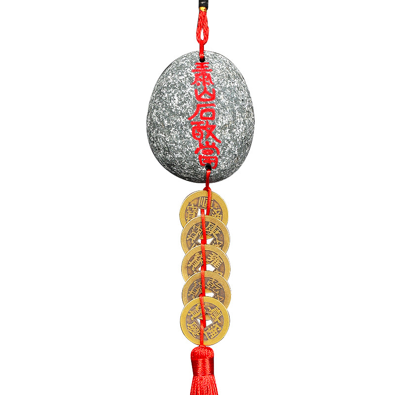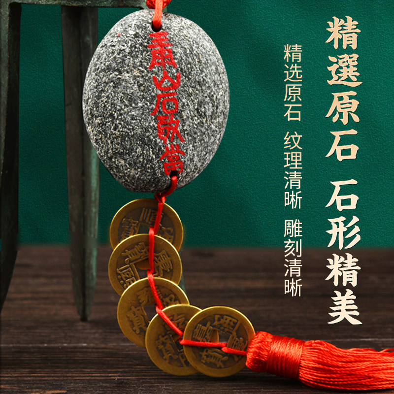 泰山聚贤阁石敢当挂件五帝钱挂件天然原石室内客厅家居卧室外铜钱
