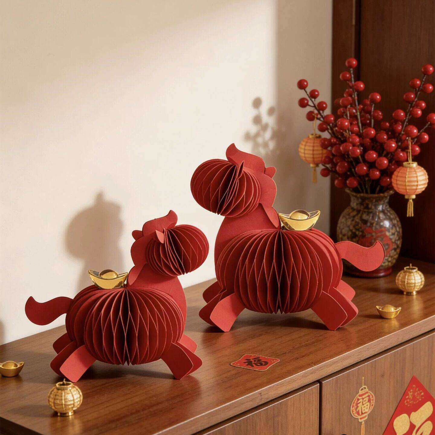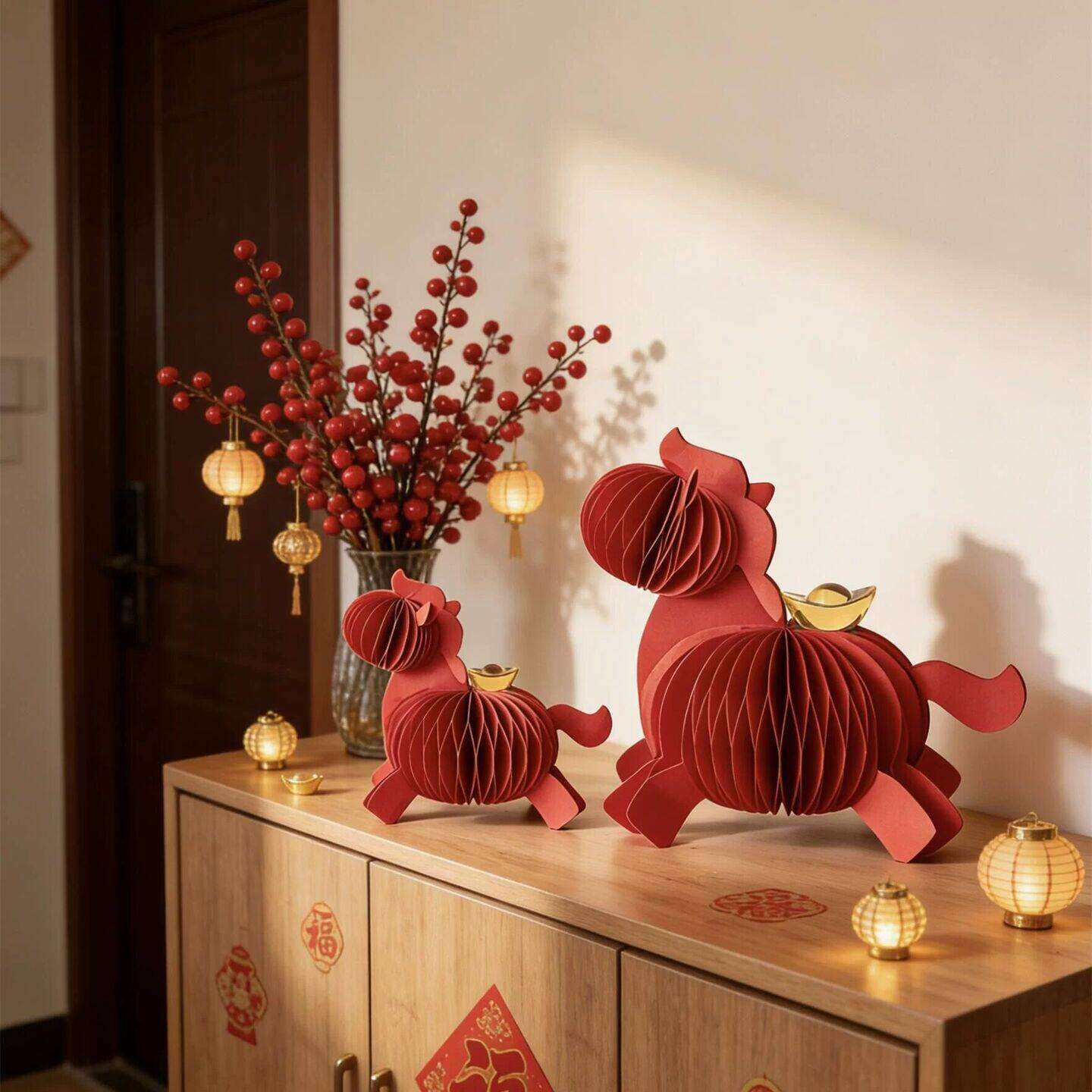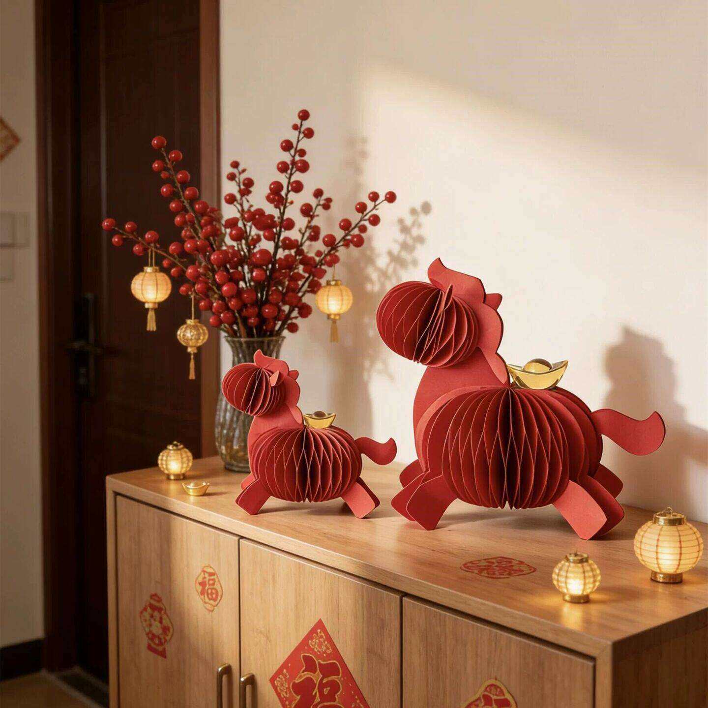 马到成功红色蜂窝发财马新年装饰摆件高颜值客厅玄关橱柜喜庆布置