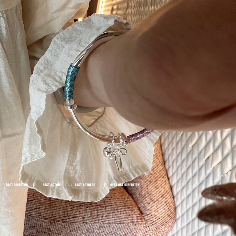 足银9999推拉可调节莫比乌斯编绳蝴蝶结配件足银手镯 首饰银饰