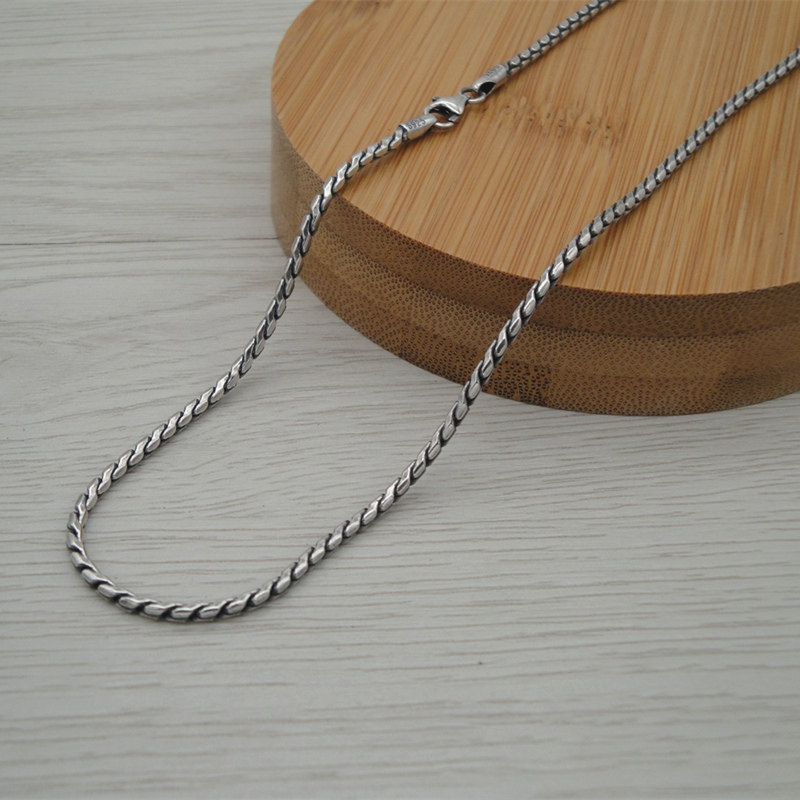 S925纯银项链简约个性复古泰银项链麻绳纹时尚吊坠配饰男女潮饰