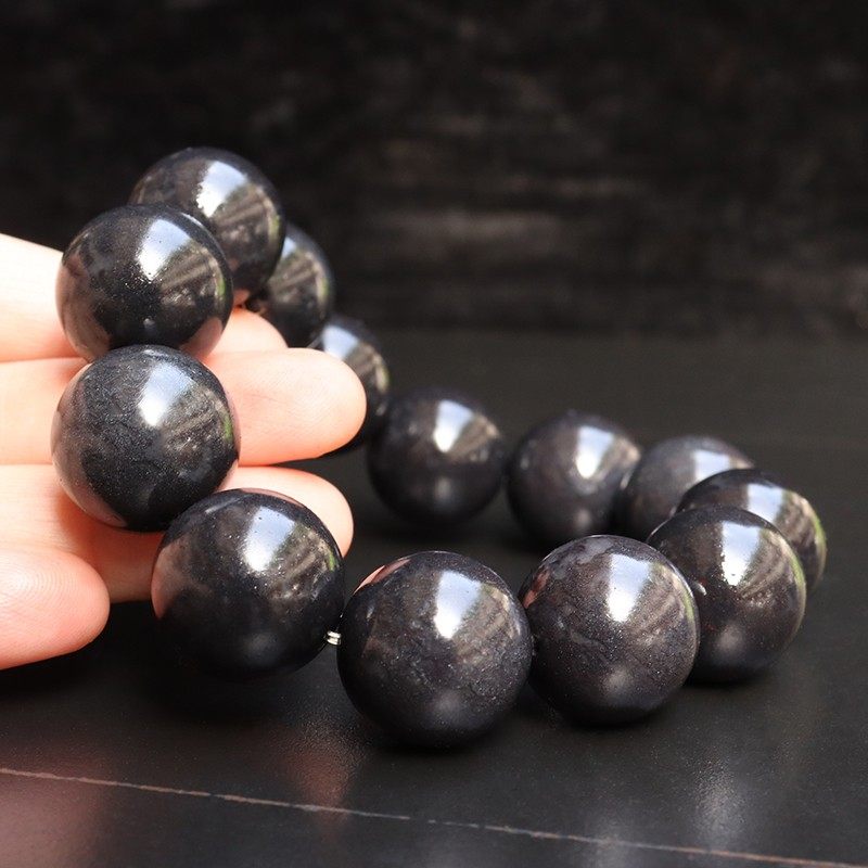 天然桂林鸡血玉石手链上朗料黑色手串男士18*18mm13颗107g手链