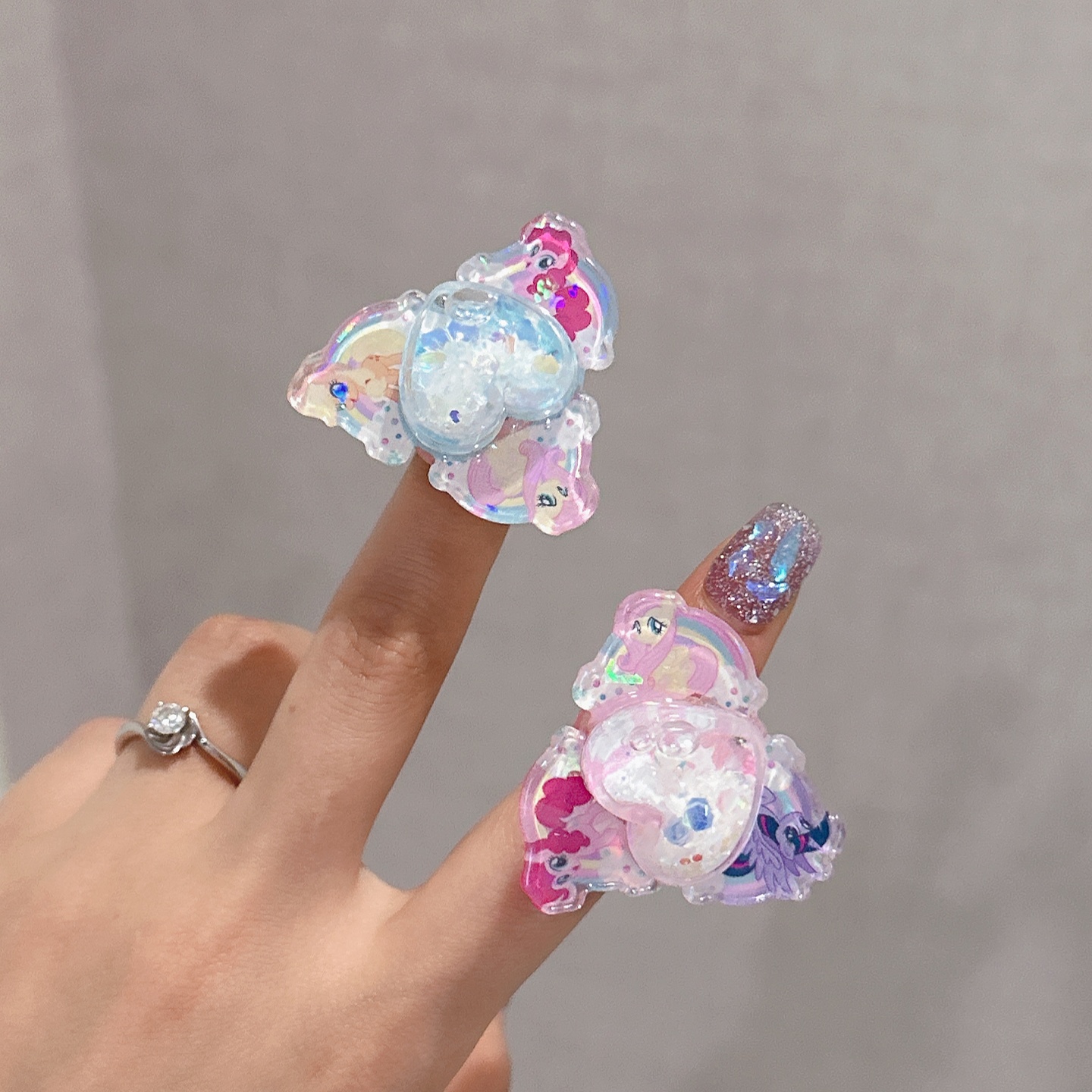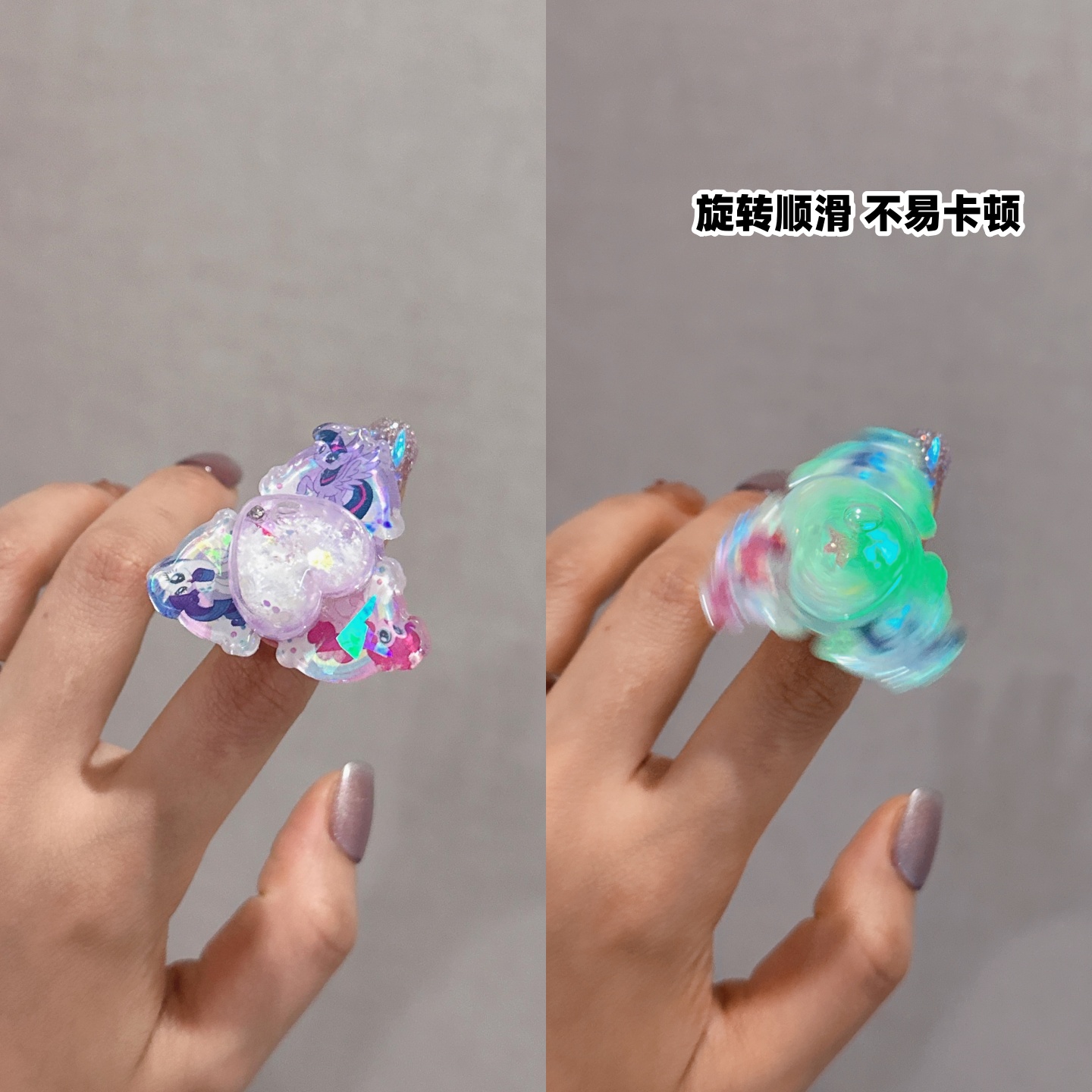 正版小马宝莉儿童旋转戒指碧琪紫悦公主流沙首饰闪灯玩具生日礼物