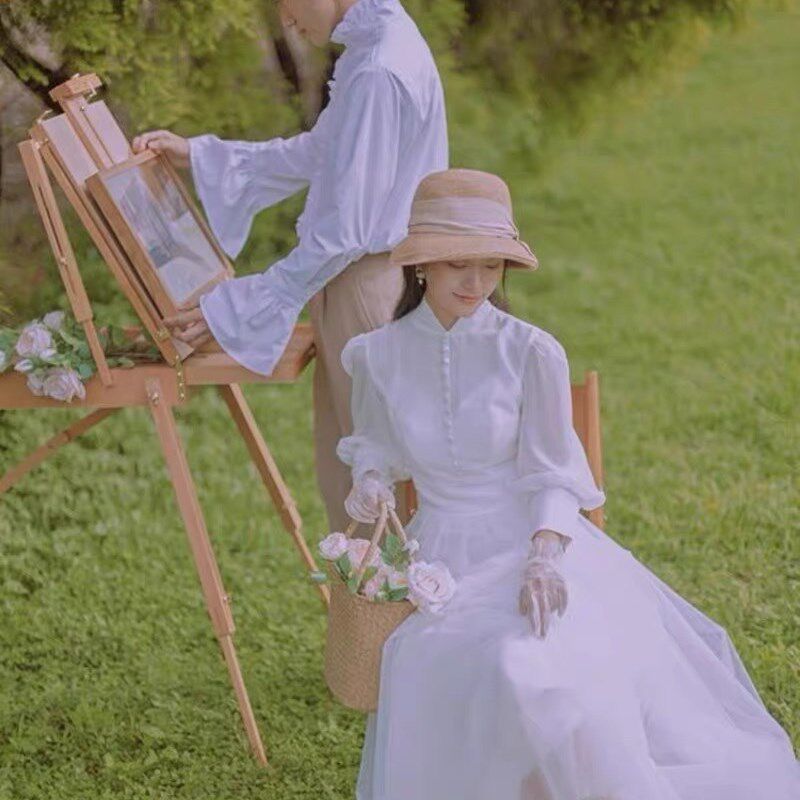 法式新款婚纱摄影道具外景旅拍田园风格画架复古油画黑色弯把竹伞