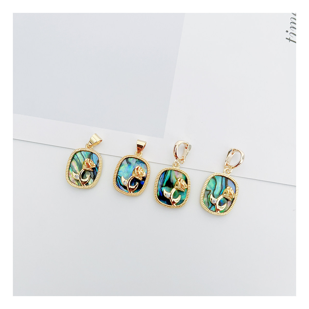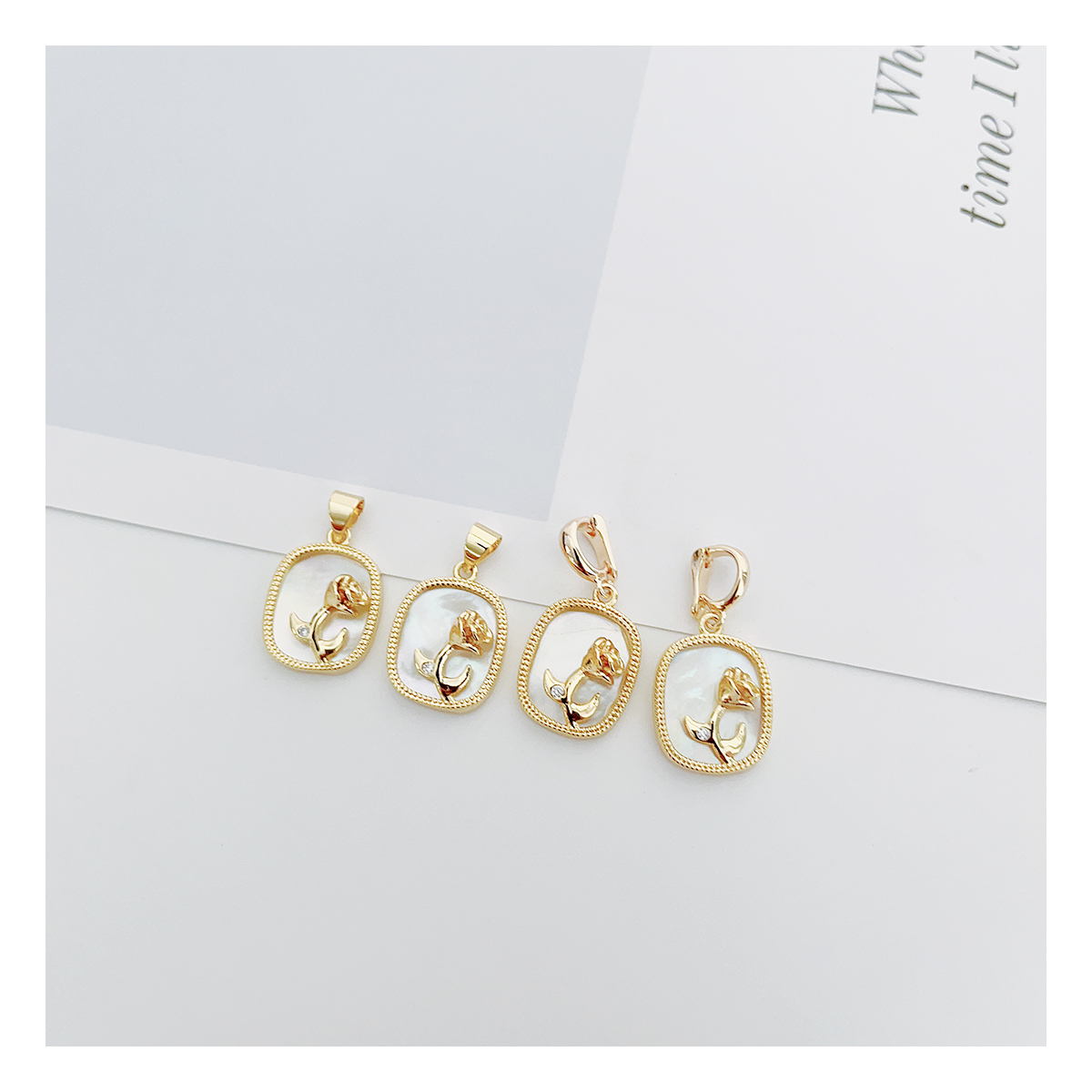 万能扣白贝玫瑰花吊坠可拆卸瓜子扣鲍鱼贝项坠珍珠项链不掉色吊坠