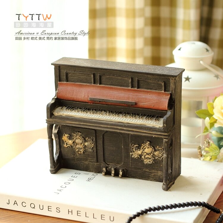 美式乡村复古奶茶服装店铺橱窗陈列家居装饰品酒吧咖啡馆钢琴摆件
