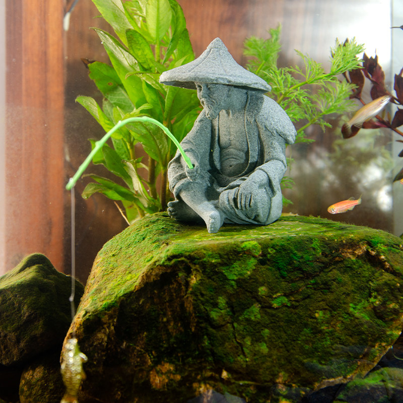 姜太公钓鱼假山水景摆件流水人物生态鱼缸内装饰品渔翁微景观造景