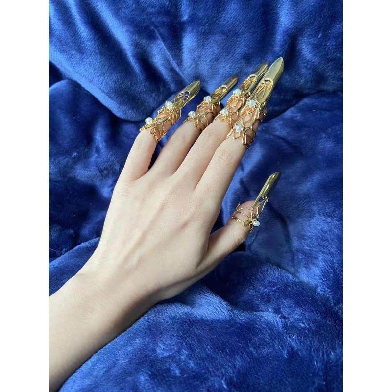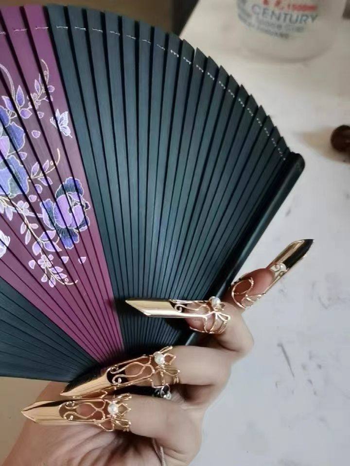 汉服饰品古风凹造型指套开口可调节缠绕线线条造型护甲套装指甲戒