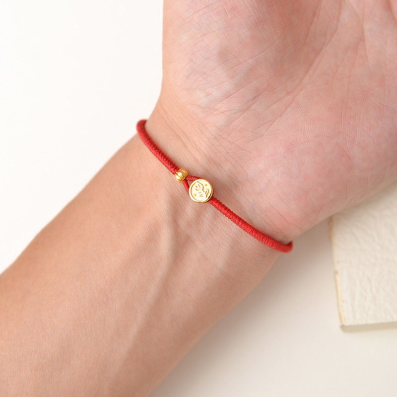 本命年转运珠手工编泰蜡金刚结郁金香手链金色扣情侣结婚红色手绳