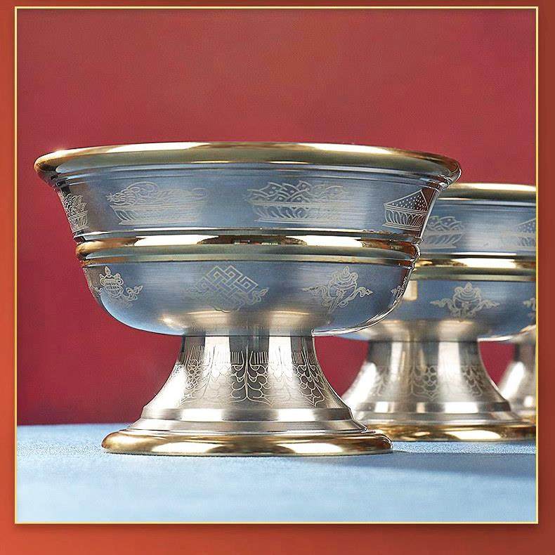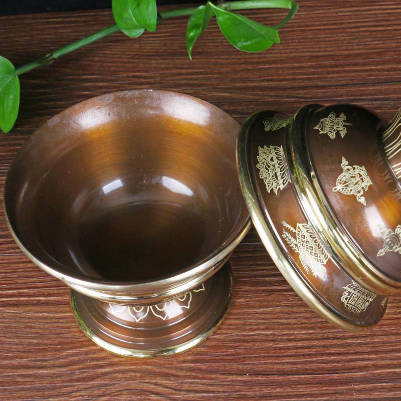 尼泊尔藏式纯铜 供水碗 家用八吉祥高脚供水杯佛前供水碗桌面摆件