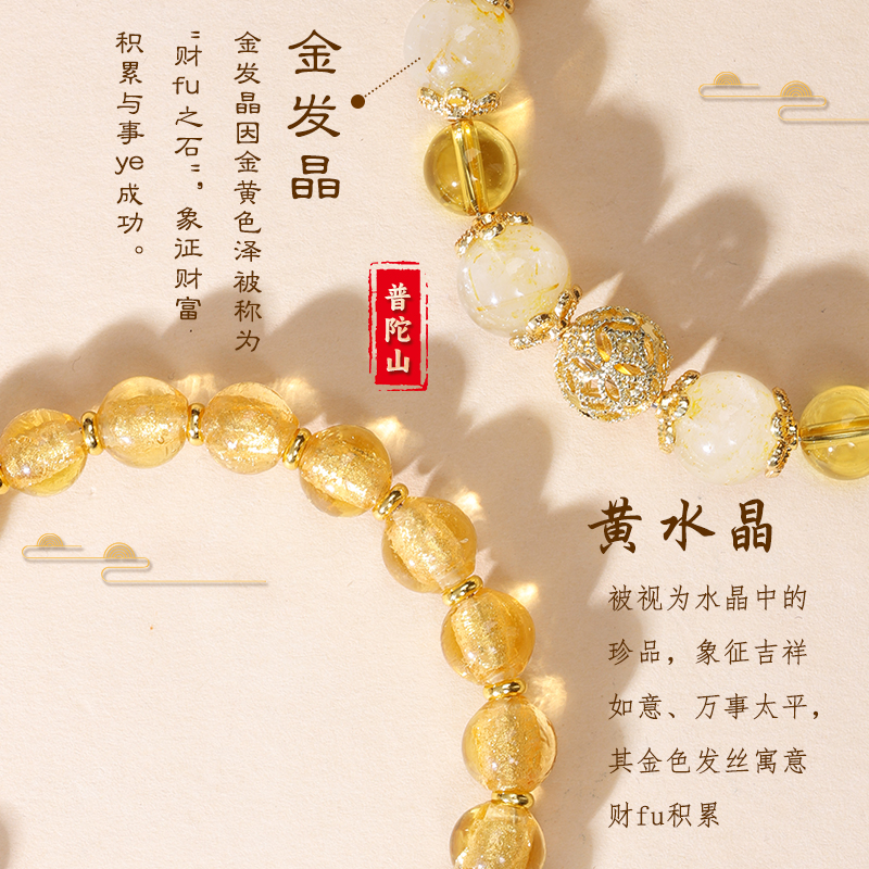 峨眉山天然黄水晶手链女款5A发晶本命年招财吸金手串男