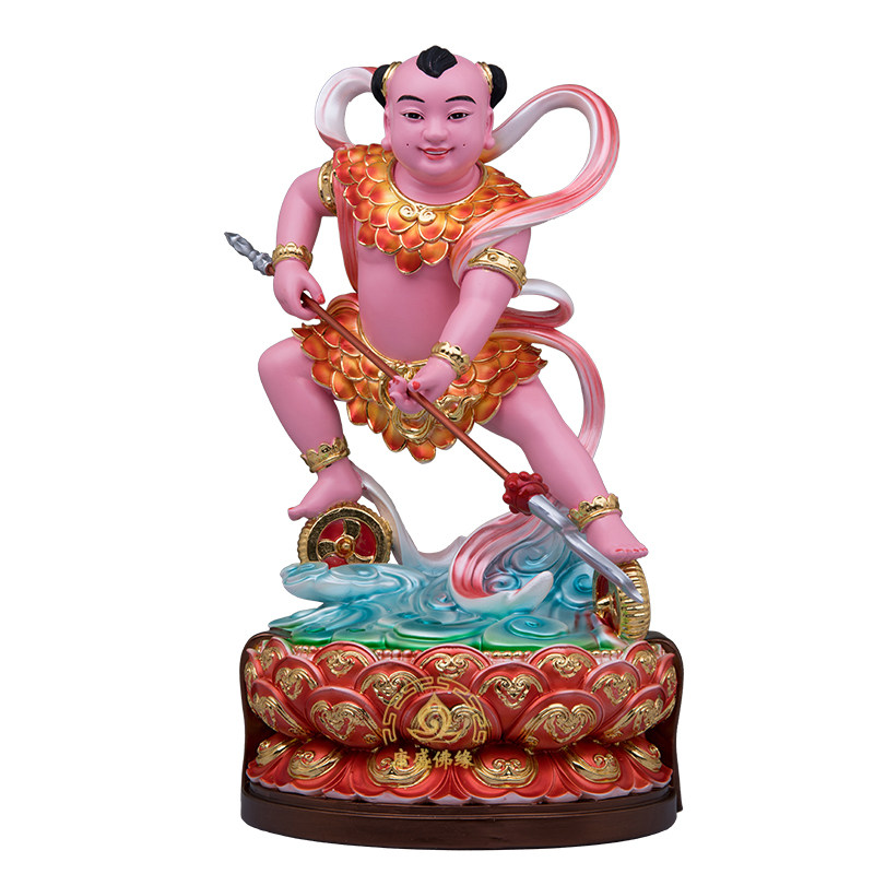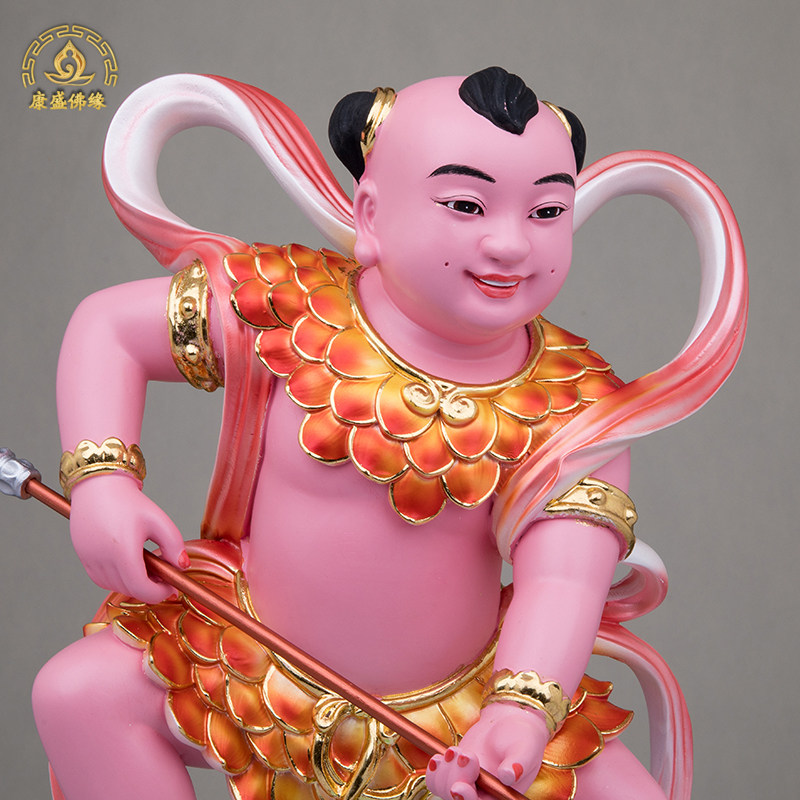 新款莲花太子神像树脂金缕彩哪吒三太子红孩儿佛像寺庙家用摆放