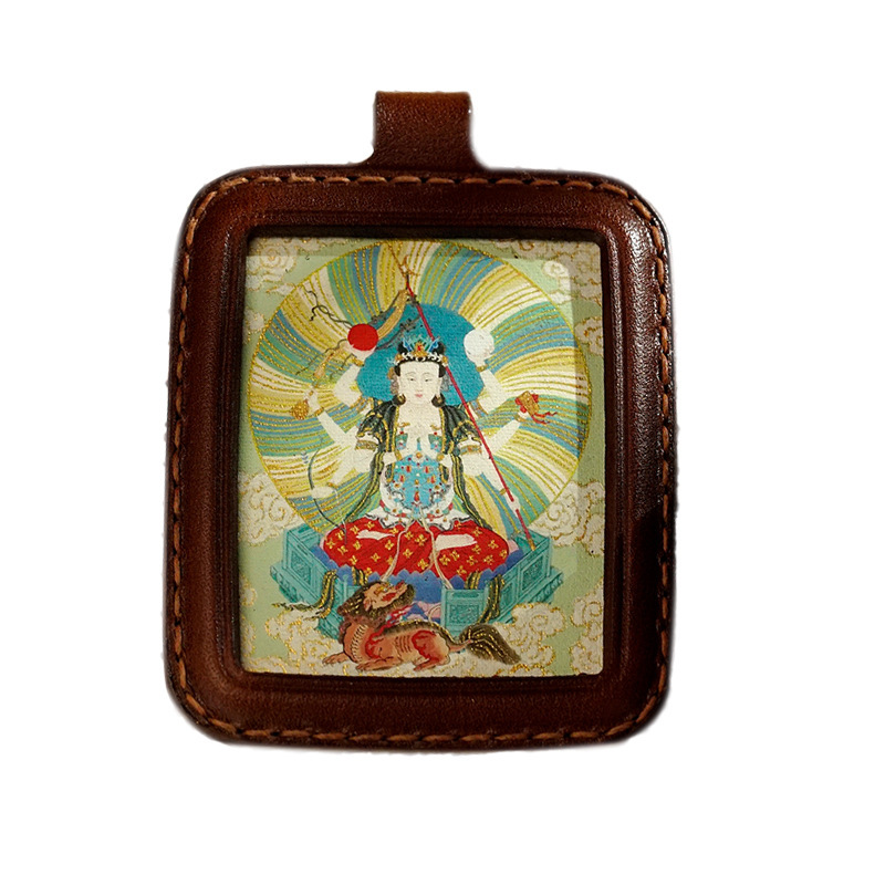 新非遗西藏风手绘描金五爷唐卡尼泊尔青海手工可定图吊坠挂件