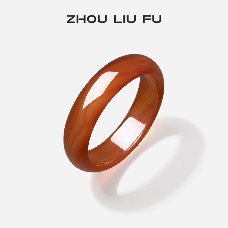 周六福枫叶红玉髓手镯宽条新中式国风汉服古风送女友纪念日礼物