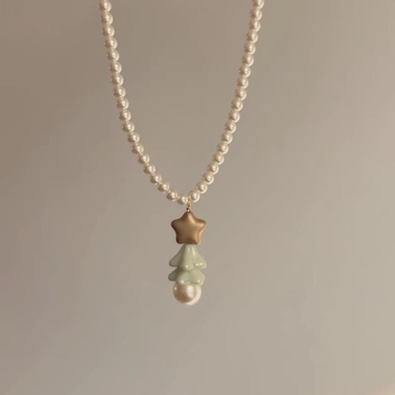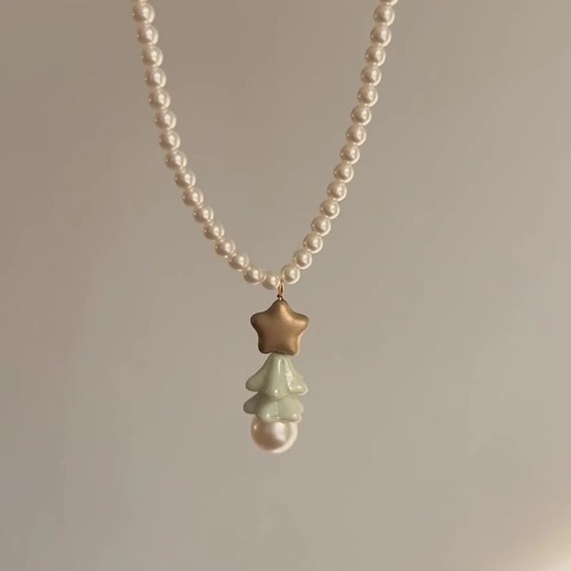 法式仿珍珠圣诞树项链女2025新款爆款秋冬毛衣链轻奢小众节日礼物