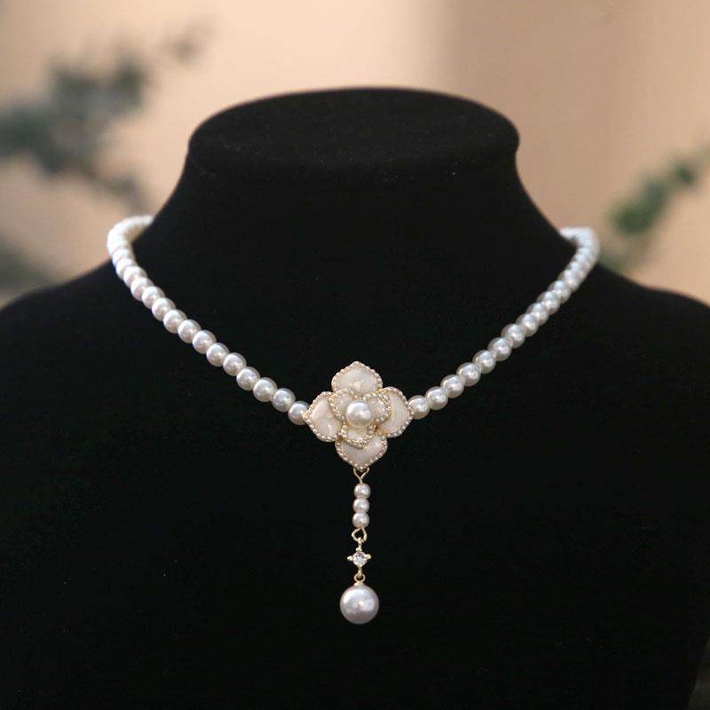 法式复古珍珠项链气质花朵花瓣锁骨链新娘颈链婚纱晚礼服宴会配饰