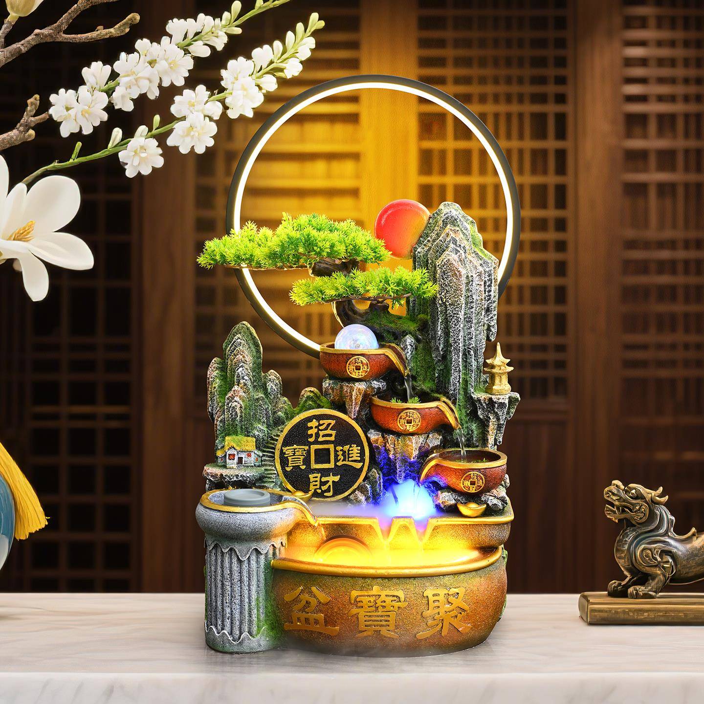 招财流水摆件循环水客厅办公室景观聚宝盆桌面风水轮开业乔迁礼物