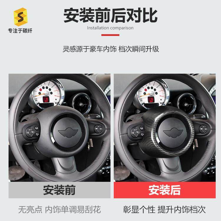 适用于宝马MINI迷你R系干碳方向盘车标贴气囊盖汽车碳纤维装饰贴